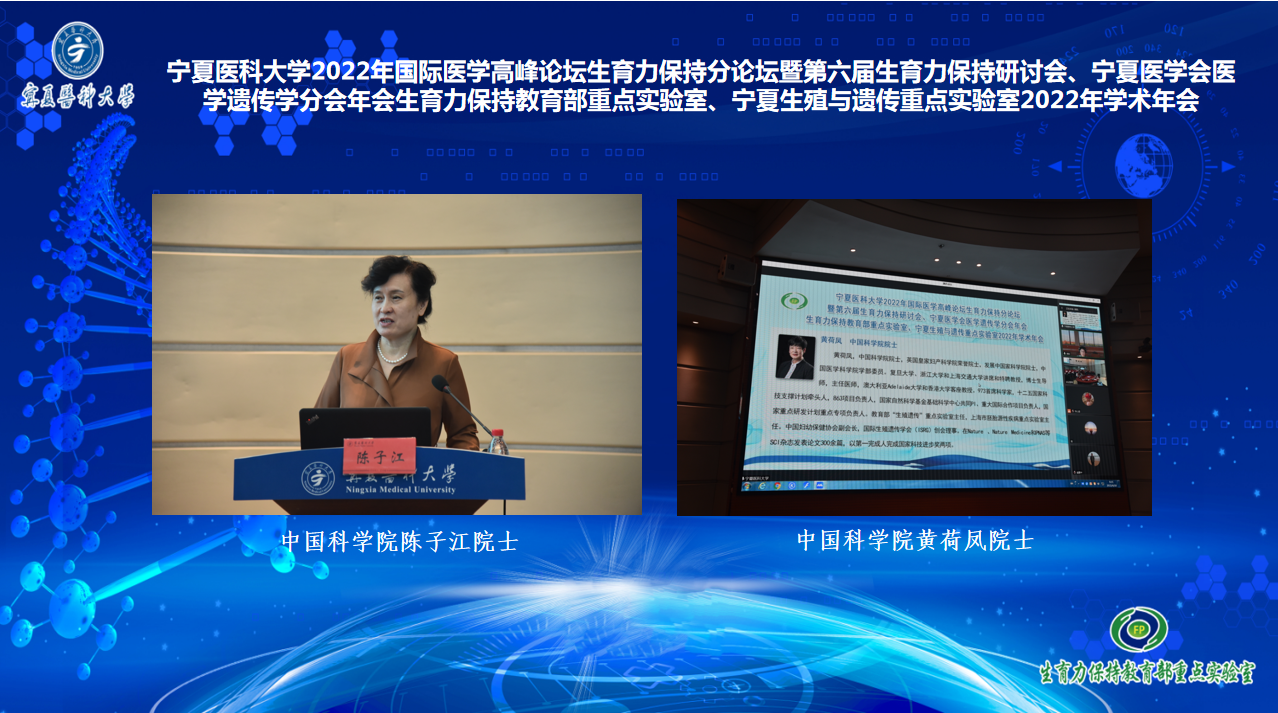 6月18-19日,太阳成集团官方网站2022年国际医学高峰论坛生育力保持分论坛暨第六届生育力保持研讨会、宁夏医学会医学遗传学分会年会、生育力保持教育部重点实验室/宁夏生殖与遗传重点实验室年会成功举行。中国科学院陈子江院士、黄荷凤院士、浙江大学盛建中教授、武汉大学汪晖教授、上海交通大学吴际教授、浙江大学孙斐教授、广州妇女儿童医疗中心李卫教授、中国医学科学院宋伟教授等23位生殖领域专家围绕生育力保持基础与临床研究为大会做了精彩的报告。学校副校长丁聃出席开幕式并致辞。科技处长韩怀钦及生育力保持重点实验室的全体师生、总医院生殖中心及全区各市县从事妇幼保健和生殖医学的专业技术人员通过线下线上方式参加论坛。