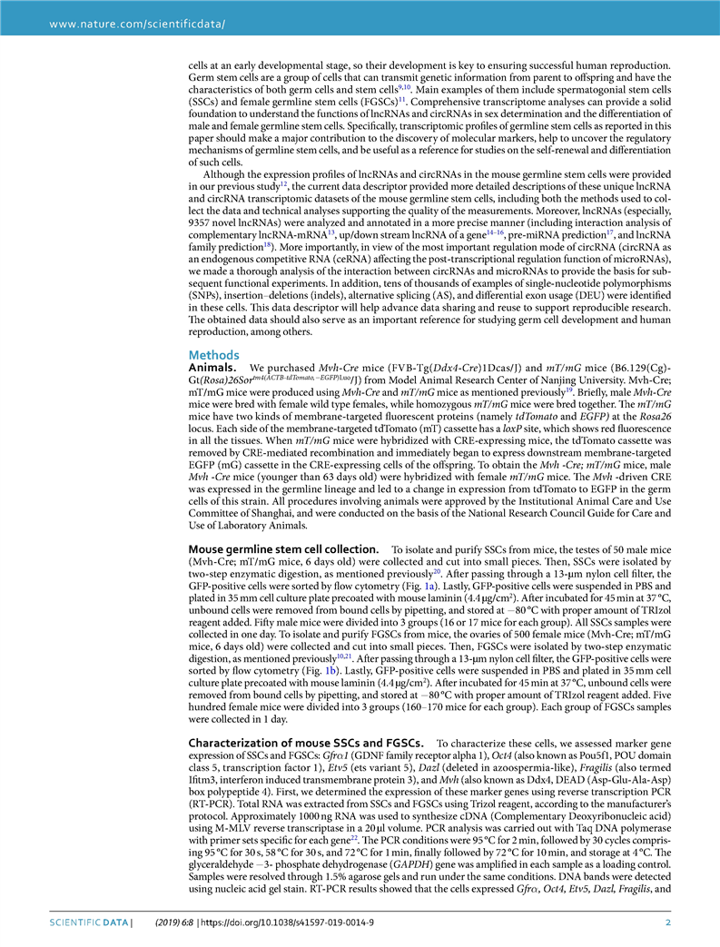 吴际-Genome-wide identification and characterization of long noncoding and circular RNAs in germline stem cells