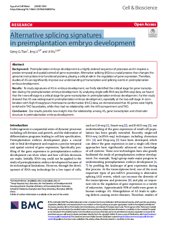 Alternative splicing signatures in preimplantation embryo development