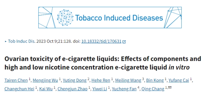 常青等人在《Tobacco induced diseases》发表题为“Ovarian toxicity of e-cigarette liquids: Effects of components and high and low nicotine concentration e-cigarette liquid in vitro” 的论文。