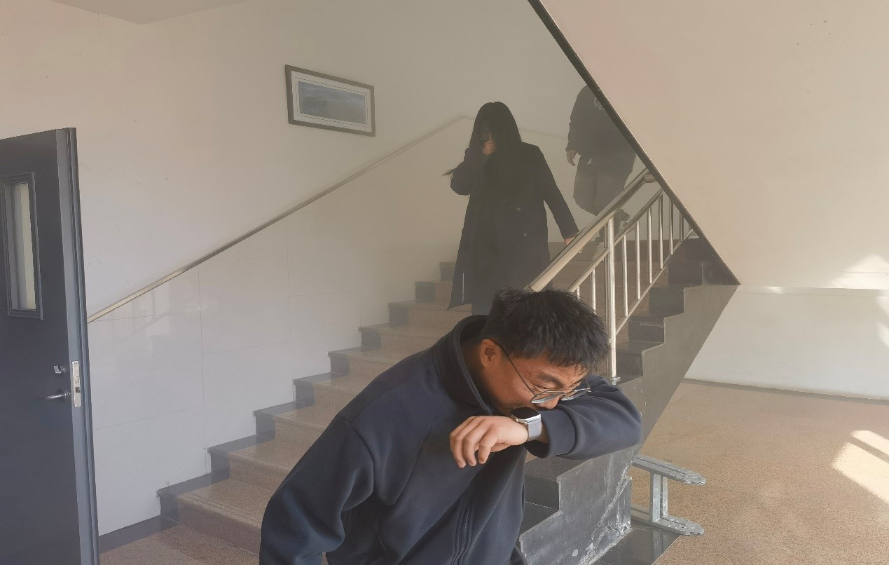 随后,进行了现场消防设施联动演练和灭火器材实操演练。在保卫处及维保公司人员指导下启动了各楼层的手报按键,放下卷帘门,警报响起的同时,大家有序地对各楼层的人员进行了紧急疏散,确保在场人员安全撤离。保卫处杨俊康老师从消防安全的“四个能力”方面,对如何正确报火警、如何扑救初期火灾,如何防止火灾进一步蔓延、如何正确逃生等方面进行现场培训,并要求培训人员上手操作如何正确使用火毯、灭火器和消防水龙带等消防器材。