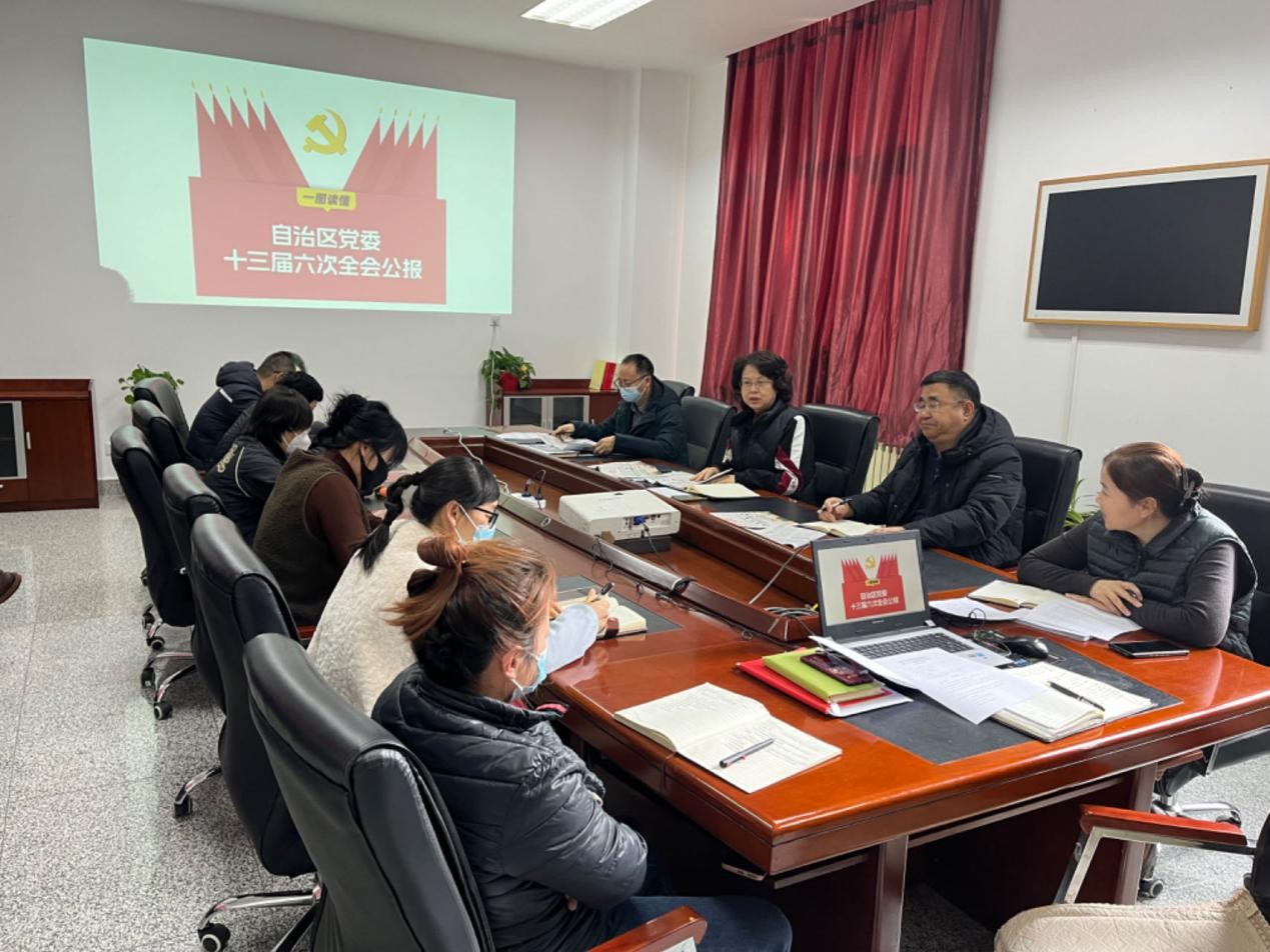 12月27日,图书馆召开专题会议,传达学习自治区党委十三届六次全会暨自治区党委经济工作会议精神, 图书馆党支部书记王惠芳主持,全体馆员参加会议。