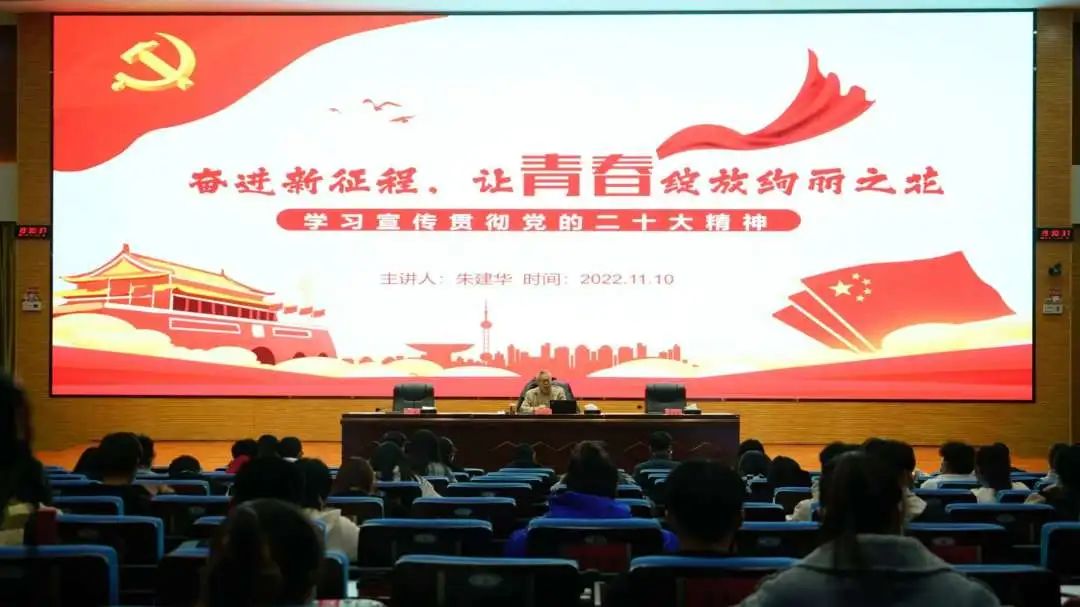 朱建华书记以“奋进新征程,让青春绽放绚丽之花”为题,紧密围绕学习贯彻党的二十大精神进行了授课。首先,他指出,习近平总书记在参加党的二十大广西代表团讨论时强调的“五个牢牢把握”,是学习贯彻党的二十大的“金钥匙”,我们要全面贯彻习近平新时代中国特色社会主义思想,全面贯彻党的基本路线、基本方略,深刻把握党和国家事业取得了历史性成就、发生了历史性变革,我国迈上全面建设社会主义现代化国家新征程的重大意义。同时,他指出全体学员要不断奋斗,以模范人物为追求,铸牢信仰之魂,坚定理想信念;以责任担当为理念,凝聚奋进力量,勇于担当实干;厚植为民情怀,坚持以民为本,不负青春韶华,立志做“有理想、敢担当、能吃苦、肯奋斗”的新时代好青年。