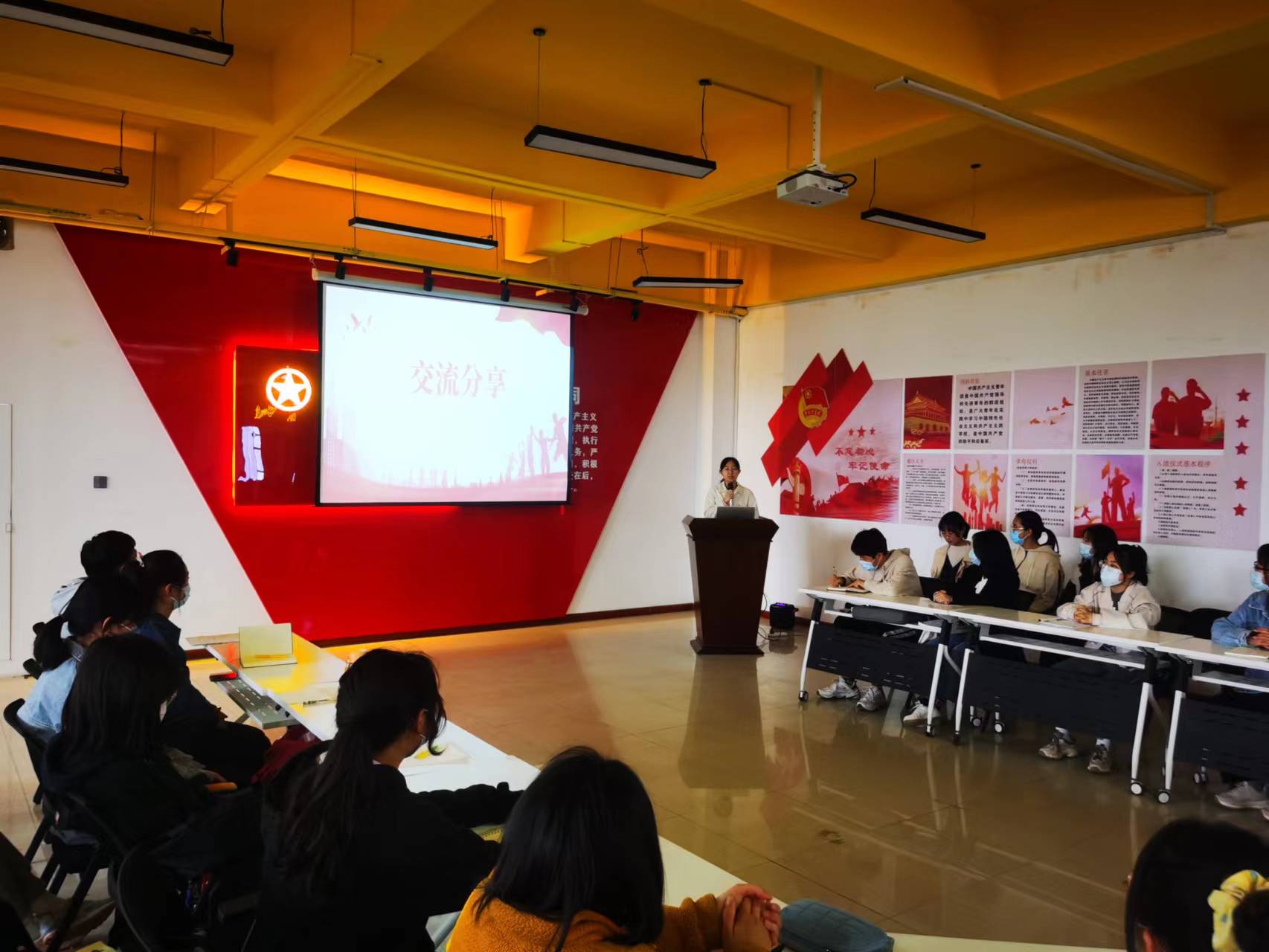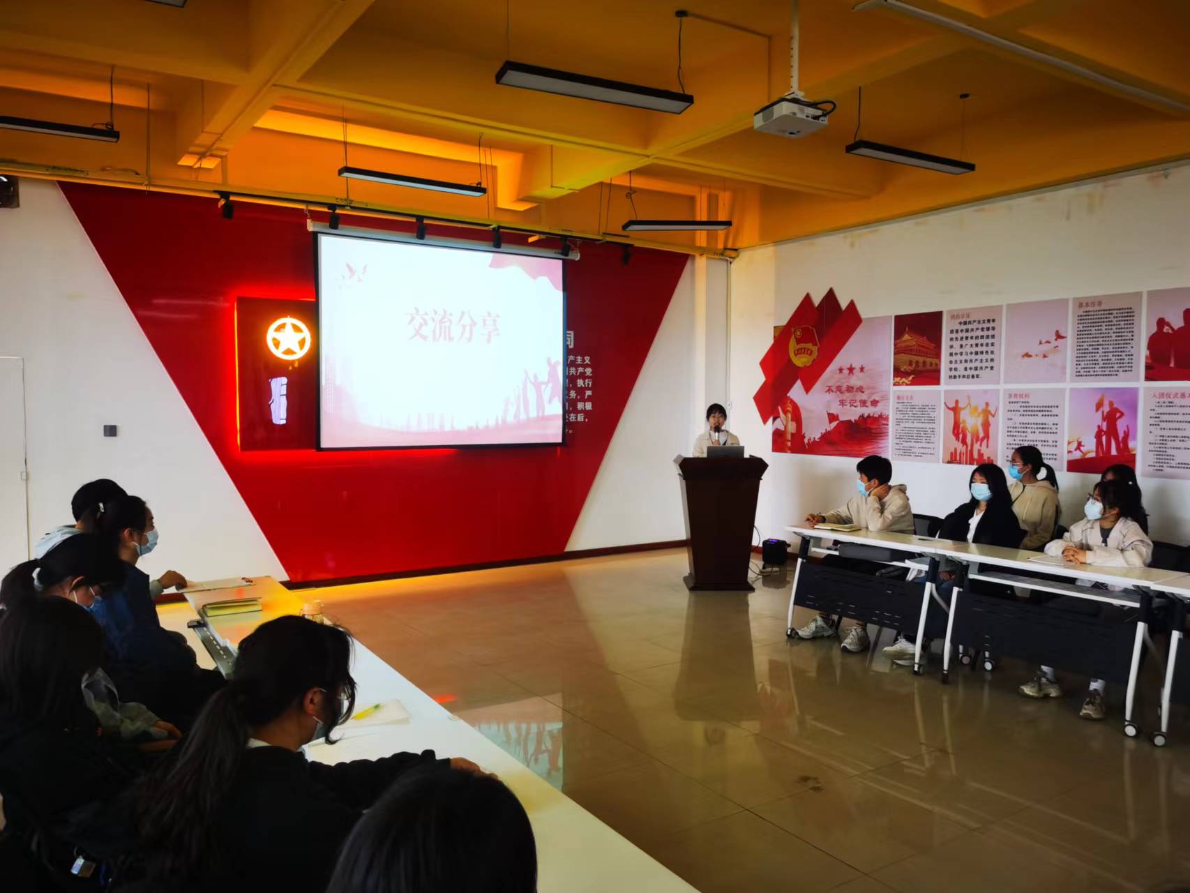 主题团日活动在介绍《习近平与大学生朋友们》这本中拉开帷幕。团支书结合视频资料向大家介绍了这本书的整体框架、丰富内容,深入解读了本书受青年学子广泛推崇的内在原因。在交流发言环节,4位同学通过研读《习近平与大学生朋友们》具体篇章,结合自己在学习生活中的所见所闻,从“年轻人要‘自找苦吃’”、“要给书本上的知识‘挤挤水’、“立志要高、起步要低”等方面分享了自己的学习心得。诗朗诵《青春中国》将主题团日活动推到了高潮,同学们慷慨激昂、掷地有声地诵读,深切讴歌了正在崛起、正值青春的伟大中国,抒发了青年大学生对祖国对人民的无比热爱之情。
