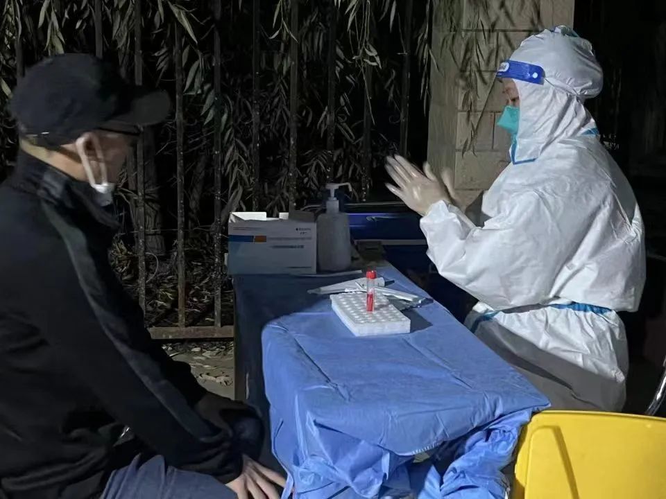 这次我不再是信息采集员,而是负责核酸样本的采集工作。“来,稍微仰一下头”,“小朋友,你很棒哦”……不知不觉中天色暗了下来,由于每采一次咽拭子都进行一次手消,加上秋雨后的村庄温度较低,手已经开始变得冰冷起来。朴实的村民会关心的说“不着急,歇一会”。村干部也全程在一旁维持秩序,为我们提供服务。
