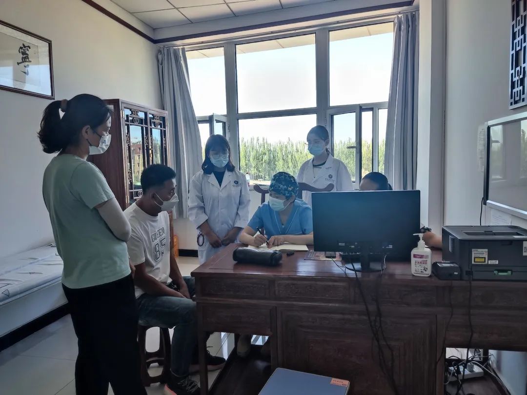 6月25日在郭斌老师的带领下到达医院,随后学生迅速被分配在针灸室、推拿室、门诊室,进入科室轮转见习,实地了解基层医疗现状。第二天义诊团集体前往贺兰县稻渔空间参加“美丽乡村集市”活动,体验乡村生活,感受社会主义新农村的风貌与成果。随后3天在初步认识了解医院情况后,跟随带教老师白帅等人开始跟诊学习,包括针灸、推拿、门诊以及微创治疗等。闲暇时老师们也给学生教授刮痧、拔罐以及针灸的相关知识,警示当下好好学习的重要性。活动的最后,学生们组织进行急救知识宣讲,包括心肺复苏及海姆立克急救法,同时也开展了太极拳和八段锦等养生功法的宣传与演练。