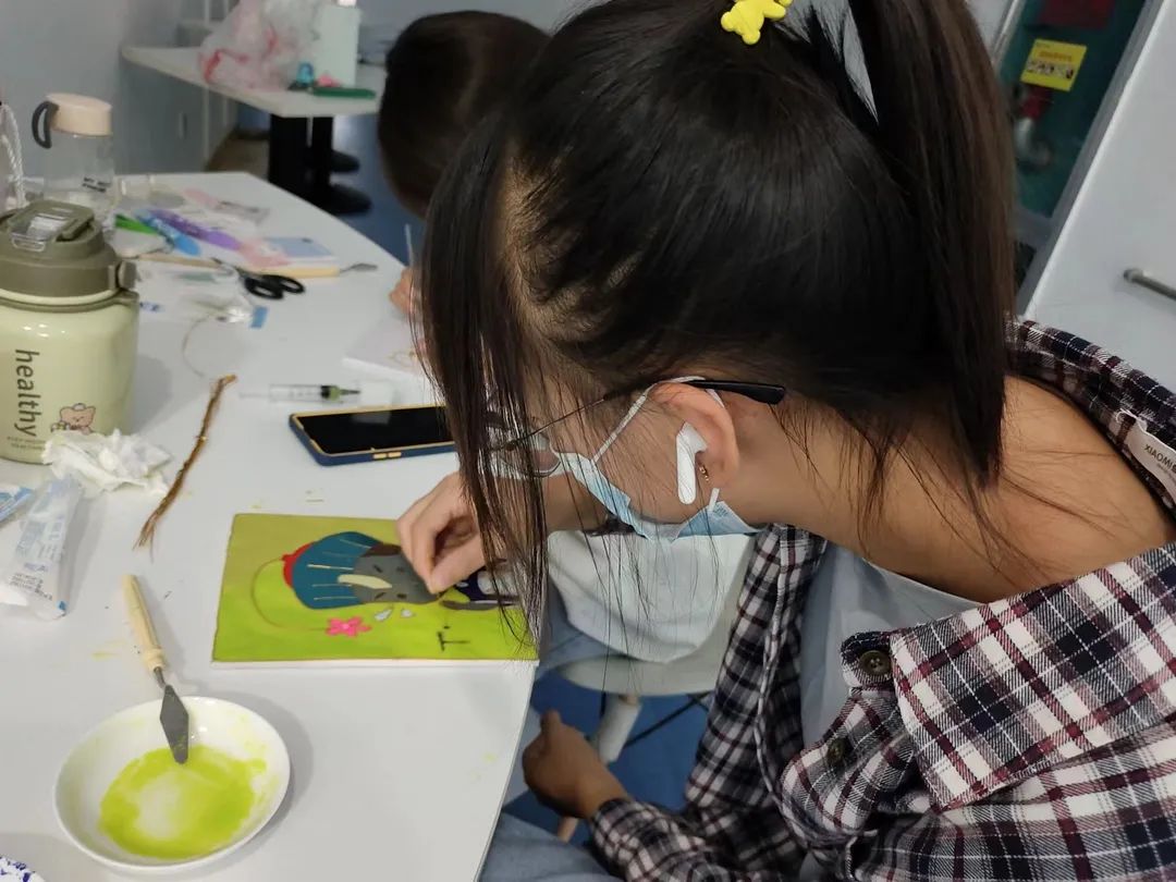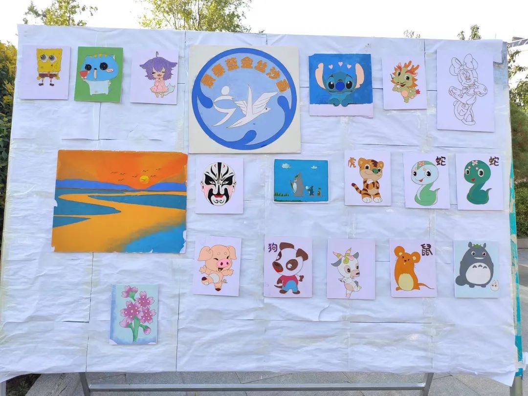沙走手落绘千山,心沉笔起描江河。为丰富同学们的校园生活,增进彼此间沟通交流,带领同学们学习非遗文化。景泰蓝金丝沙画社于2022年9月26日开展了“同心抗疫,共克时艰”主题活动。从描稿、掐丝到点沙,再到最后展览,同学们积极参与,认真学习,亲自动手完成沙画制作,体会中华优秀传统文化魅力。本次活动,抒发了学生对于优秀传统文化的热爱之情,提升学生的创造力,领略民族文化魅力,汲取民族文化精髓。
