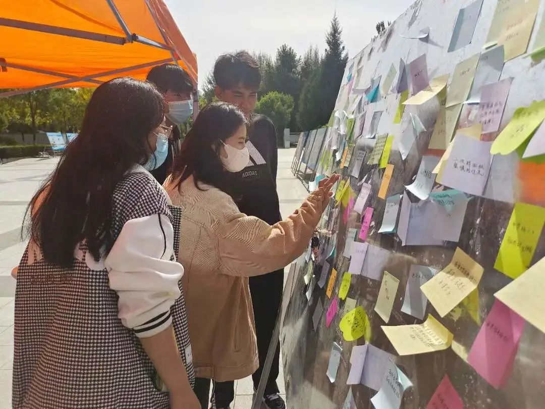 温语良言送暖意,9月27日在尚德广场举行了“合力抗艾与疫情,共享美好生活”活动,书写对艾滋病与疫情的美好愿望,并在展板上展出,展现了丝带飘飘传真情。为帮助同学们了解艾滋病,表达对艾滋病患者的关怀,同时在特殊时期表达战胜疫情的美好愿望,红丝带爱心社于2022年同学们愿山河无恙,人间皆安的美好愿景。