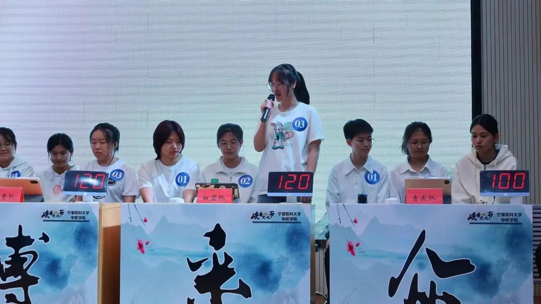 中医基础理论知识竞赛拉开了文化节的序幕,共有24名学生组成的8支队伍登上决赛舞台进行激烈角逐,通过“必答题、抢答题、风险题”三个环节多方位考查同学们对中医基础理论、中药学、中医诊断学等专业基础的掌握程度及思辨能力。同学们精准作答、反应灵敏,台上台下积极互动,展示了中医学子的良好风貌。