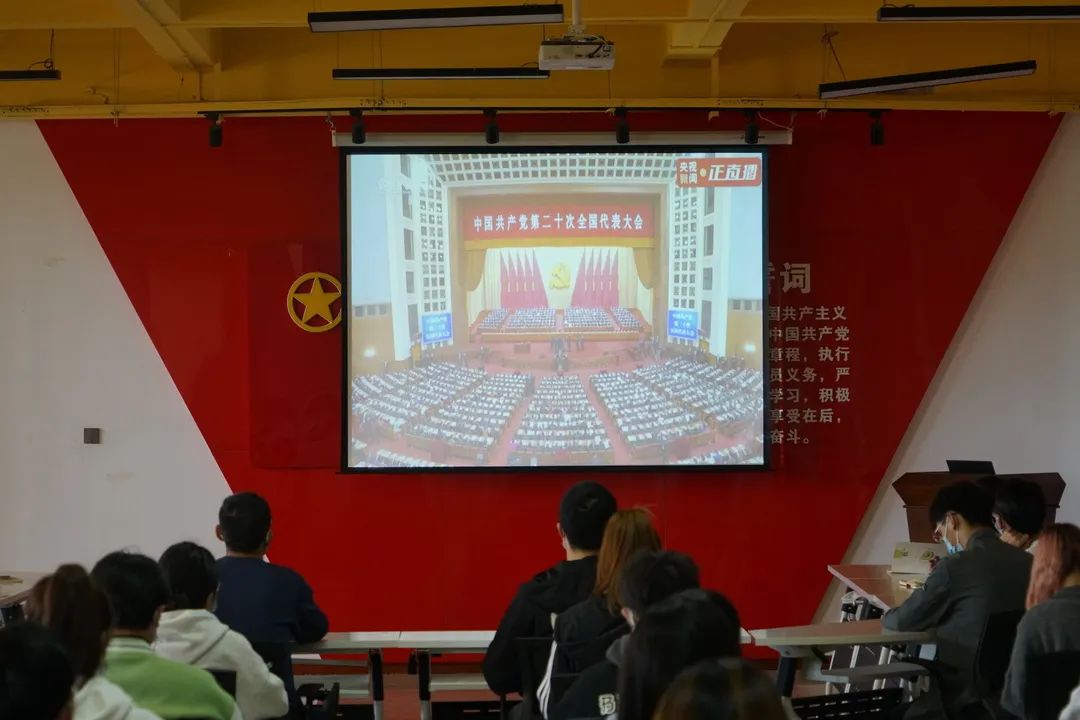 在观看直播过程中,大家庄严肃穆,认真听取习近平总书记作的二十大报告,报告字字千钧,条条入心,句句震撼,段段深刻,件件期盼。铿锵有力的话语在每位同学的心中深深印刻,让同学们更加深刻理解了中国的“非凡十年”,十年跋涉、十年笃行,大道如砥、行者无疆。