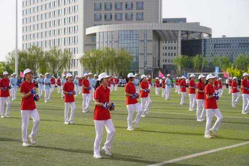 入场式上,伴随着雄壮激昂的运动员进行曲,国旗护卫队,校旗、校徽、彩旗队,各单位运动员代表方队依次入场,他们排着整齐的队伍,朝气蓬勃、昂首阔步、口号铿锵、意气风发地走在运动场上。在庄严的升国旗仪式中,全体师生员工肃立齐唱国歌,注视着五星红旗冉冉升起,每一道声音都是青春的宣言,汇聚着炽烈的力量。在方阵表演中,第一临床医学院学生带来的歌舞表演《青春至上》,以灵动的音符、曼妙的舞姿,彰显了宁医学子活力四射的青春之美;公共卫生学院学生在《青蓝之间》中演绎出生命旋律和运动之美;口腔医学院和检验学院学生在《石榴花开耀宁医》的欢乐乐曲中唱响各民族团结和谐之美,绘就出各民族像石榴籽一样紧紧抱在一起相亲相爱、团结进步的美好未来。