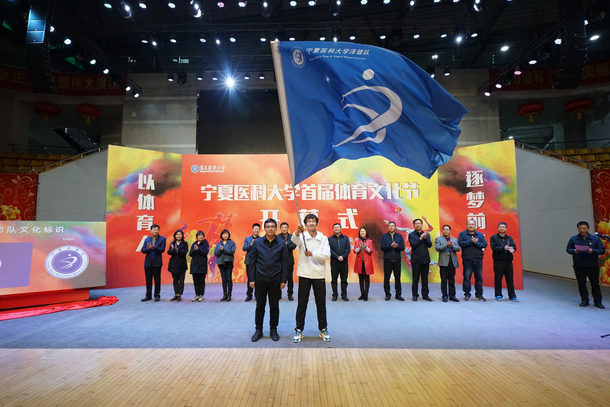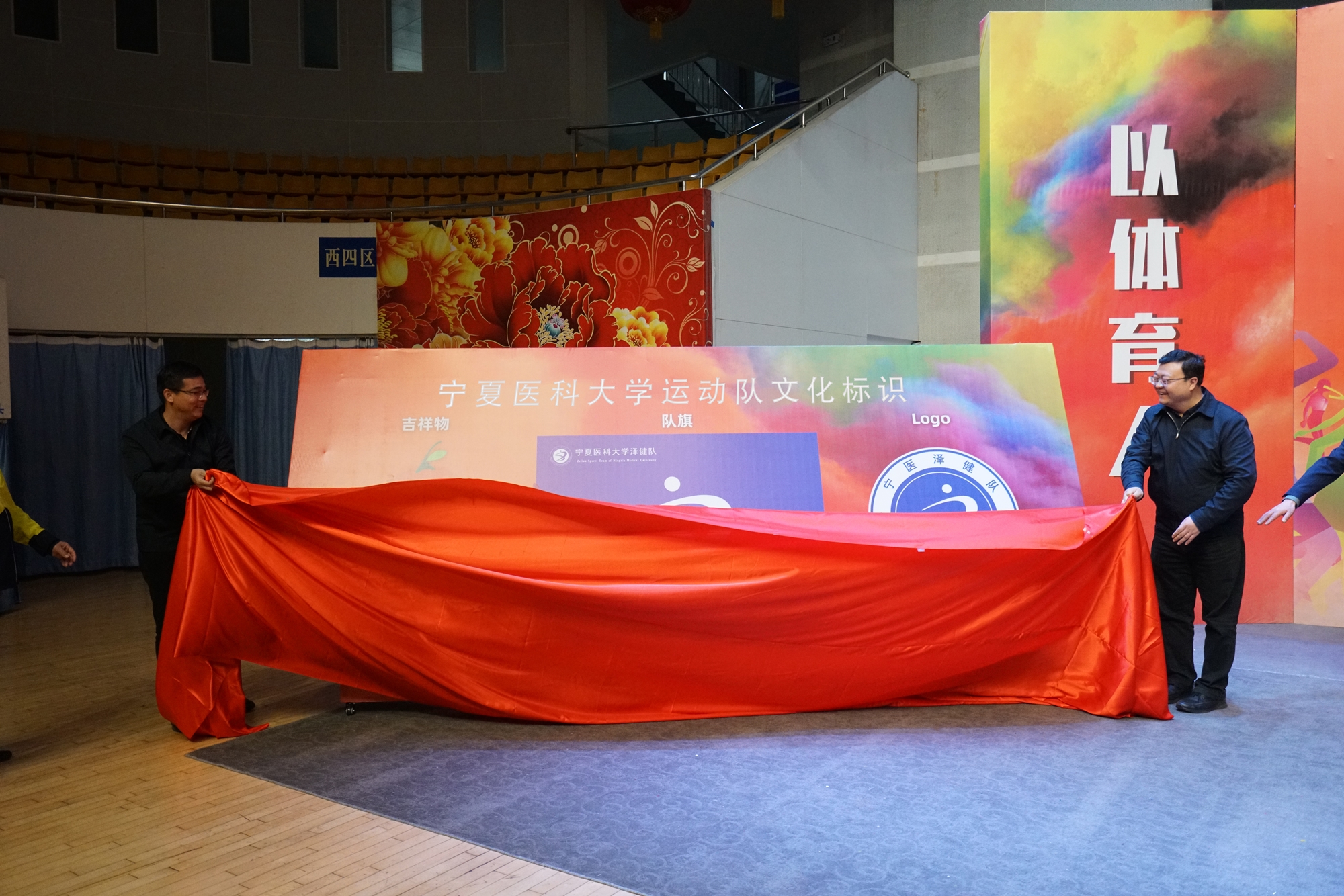 开幕式上,姜怡邓校长、丁聃副校长为学校运动队文化标识揭幕,姜怡邓校长为运动队授旗。
