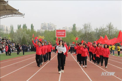 4月25日,“喜迎建党百年”学校第49届运动会在雁湖校区体育场隆重开幕。全体校领导,各职能部门、学院负责人及3000余名师生观看了开幕式。学校党委副书记朱建华主持仪式并宣布开幕。