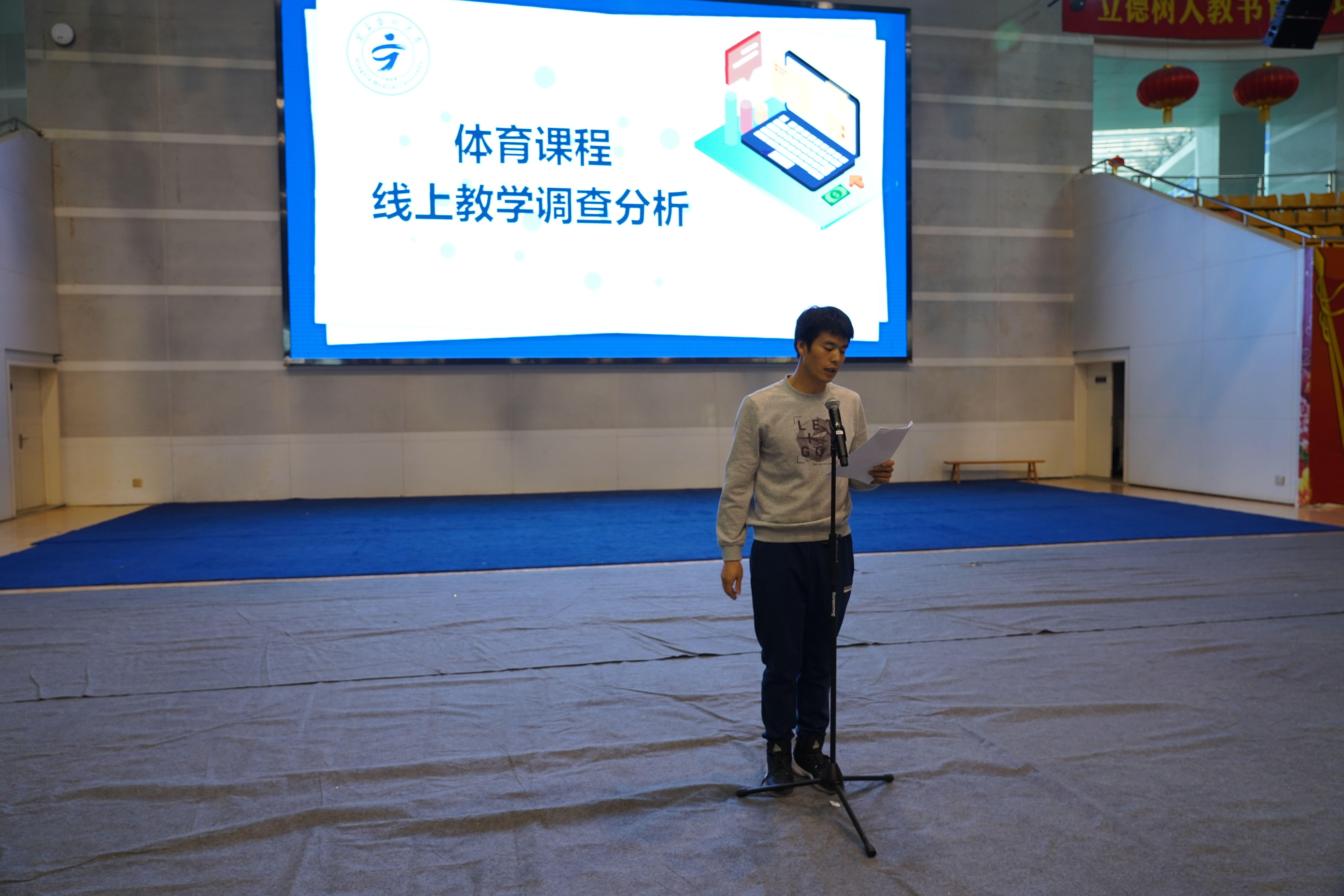 体育课线上教学总结暨研讨会于11月29日下午14:30在弘毅体育馆圆满举办。学校教务处、教师教学发展中心、教学质量监控与评估中心相关负责人,体育部全体教师及2020、2021级各选项班体育委员120余人参加研讨会,会议由体育部副主任姚正宁主持。