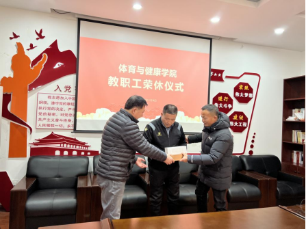 1月9日上午,体育与健康学院在弘毅体育馆党员之家为两位退休教师举办荣休仪式,学院班子、退休教师及学院全体教职工参加仪式。