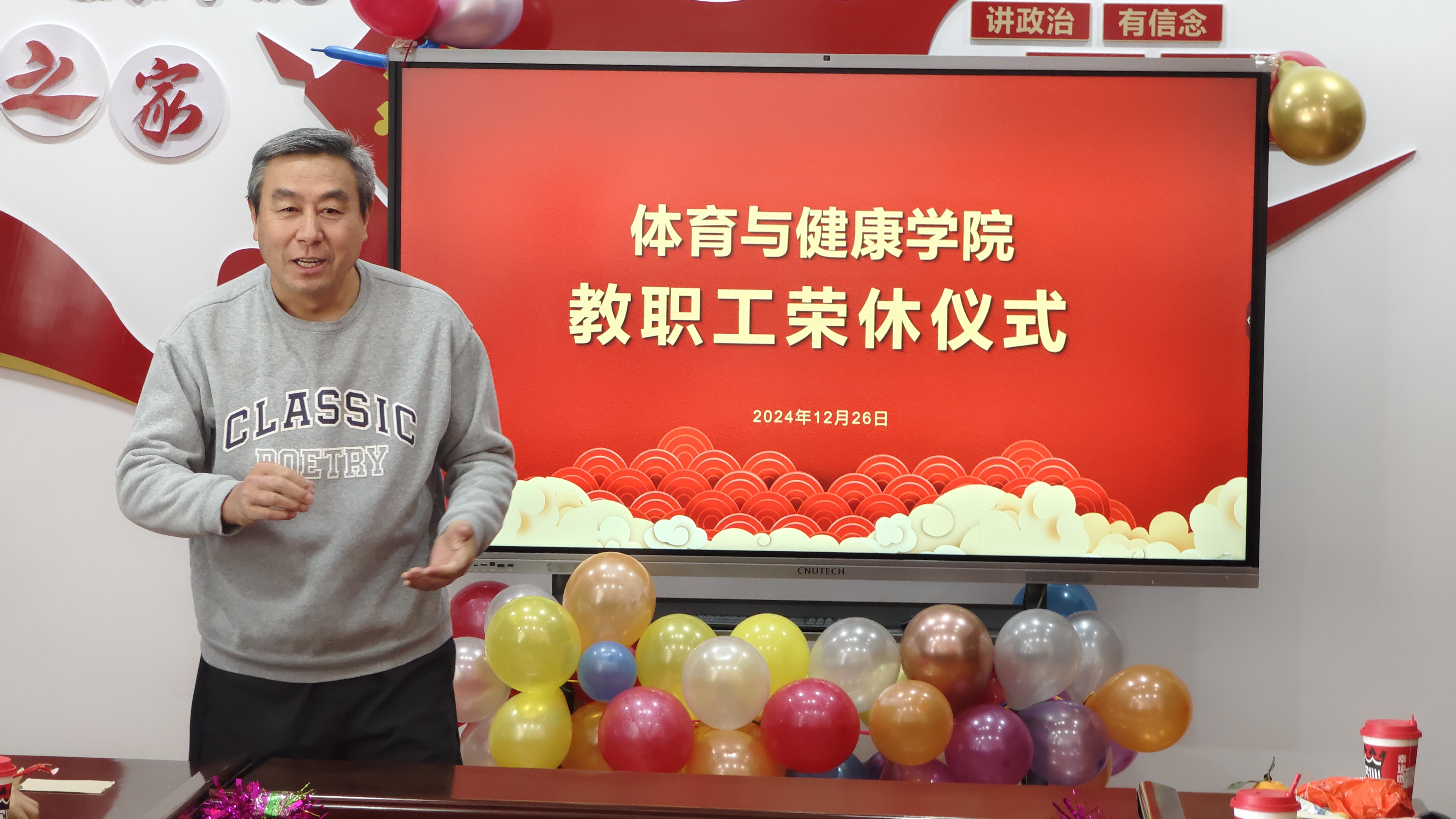 12月26日上午,体育与健康学院全体教职工共聚一堂,为展志明老师举行了一场温馨难忘的荣休仪式。党总支书记雷鸣选主持仪式。