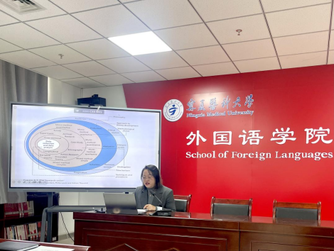 会上,靳慧敏老师首先向大家介绍了她所就读的马来西亚国立大学。作为一所享有国际声誉的高等学府,马来西亚国立大学以其卓越的学术环境和丰富的教学资源吸引了众多国际学子。靳老师详细阐述了在求学期间所学习的课程内容,包括语言学理论、跨文化交流研究以及教育心理学等。她表示,这些课程不仅拓宽了她的学术视野,也为她未来的教学和科研工作提供了坚实的理论基础。此外,靳老师还分享了她在博士学习期间所接触的科研方法理论。她强调,科学的研究方法对于提高研究效率和准确性至关重要。通过系统的学习和实践,她掌握了多种先进的科研工具和技术,为今后的学术探索奠定了坚实的基础。随后,张悦老师为大家带来了她在武汉大学进修期间的所见所闻和所感。她深感武汉大学那浓厚而纯粹的学术氛围以及严谨治学的态度对自己产生了深远的影响。在进修期间,张老师不仅沉浸于外语教育最新理念的海洋,深入学习了创新的教学方法,还积极参与了多场学术研讨会,与来自五湖四海的同行们进行了深度交流与思想碰撞。在分享会的尾声,张老师提出了三条极具启发性的建议:一是坚持阅读,以书籍为舟,拓宽视野,不断更新知识库,紧跟学术前沿;二是持续研读高水平文献,以此为梯,攀登学术高峰,提升个人研究能力;三是始终铭记教书育人的神圣使命,不忘初心,将传授知识、培养学生的综合素质与创新能力视为己任,为学生的未来发展铺设坚实的基石。
