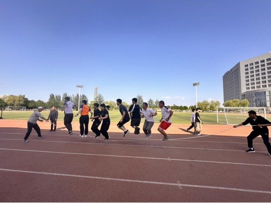 跳绳比赛过程中,全校教职工运动场上的热情与拼搏展现了新时代教师的风貌和风采,同时也展示了良好的团队凝聚力和校园文化。