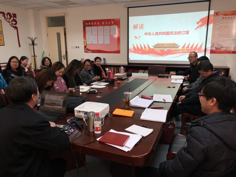 1212日下午,外国语教学部党总支特邀请校图书馆党总支书记汤波教授做了题为“解读《中华人民共和国宪法修正案》”的讲座,外国语教学部全体教职工参加了此次活动。
