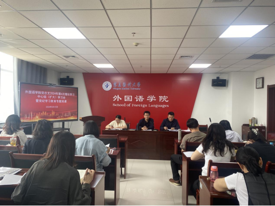 5月15日上午,外国语学院党总支召开2024年第4次理论学习中心组(扩大)学习会暨党纪学习教育专题党课,学院中心组成员、全体党员参会,党总支书记马立虎主持会议。
