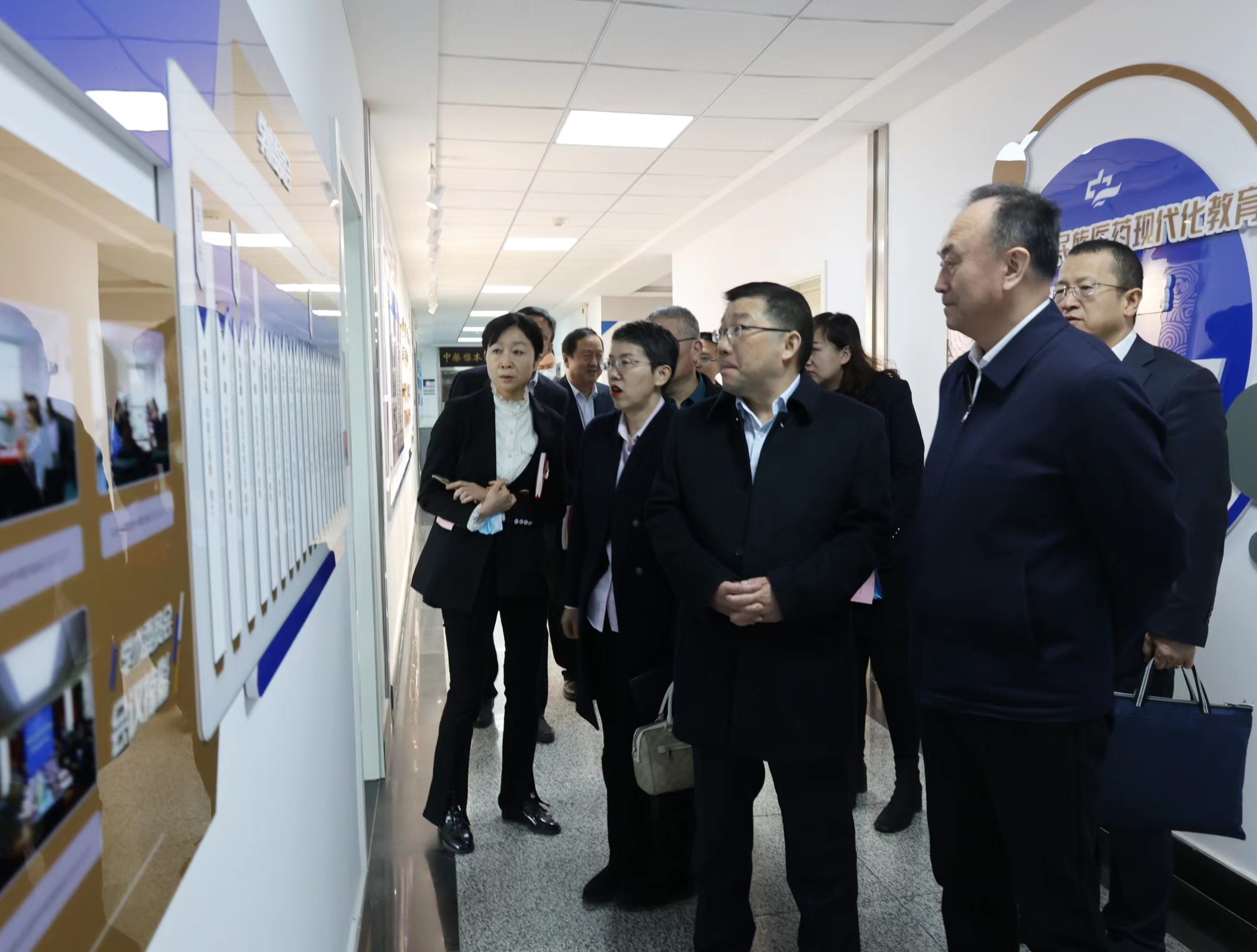 一行到重点实验室参观,学校党委书记田丰年、党委副书记朱建华、中医学院领导陪同。