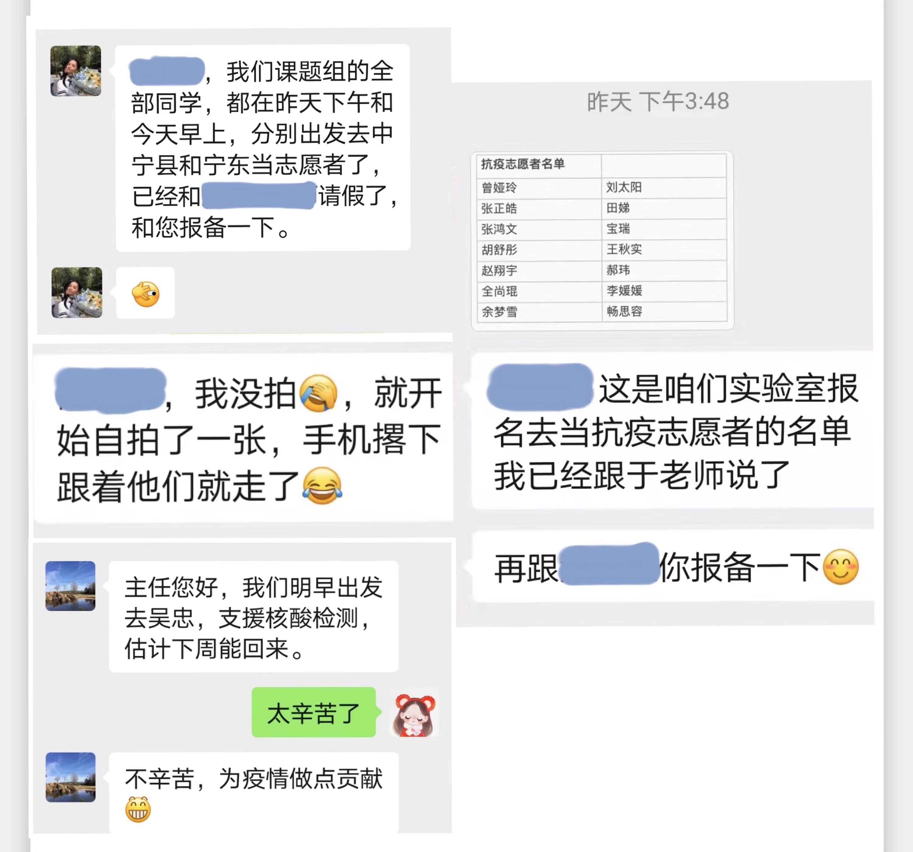 “老师,和您请个假,我和同学们出发去当志愿者了....”“老师,这是我们实验室抗疫的名单....”,铿锵有力的话语,坚定无悔的脚步,他们深知一身白衣的背后是救死扶伤的责任与生命至上的使命。