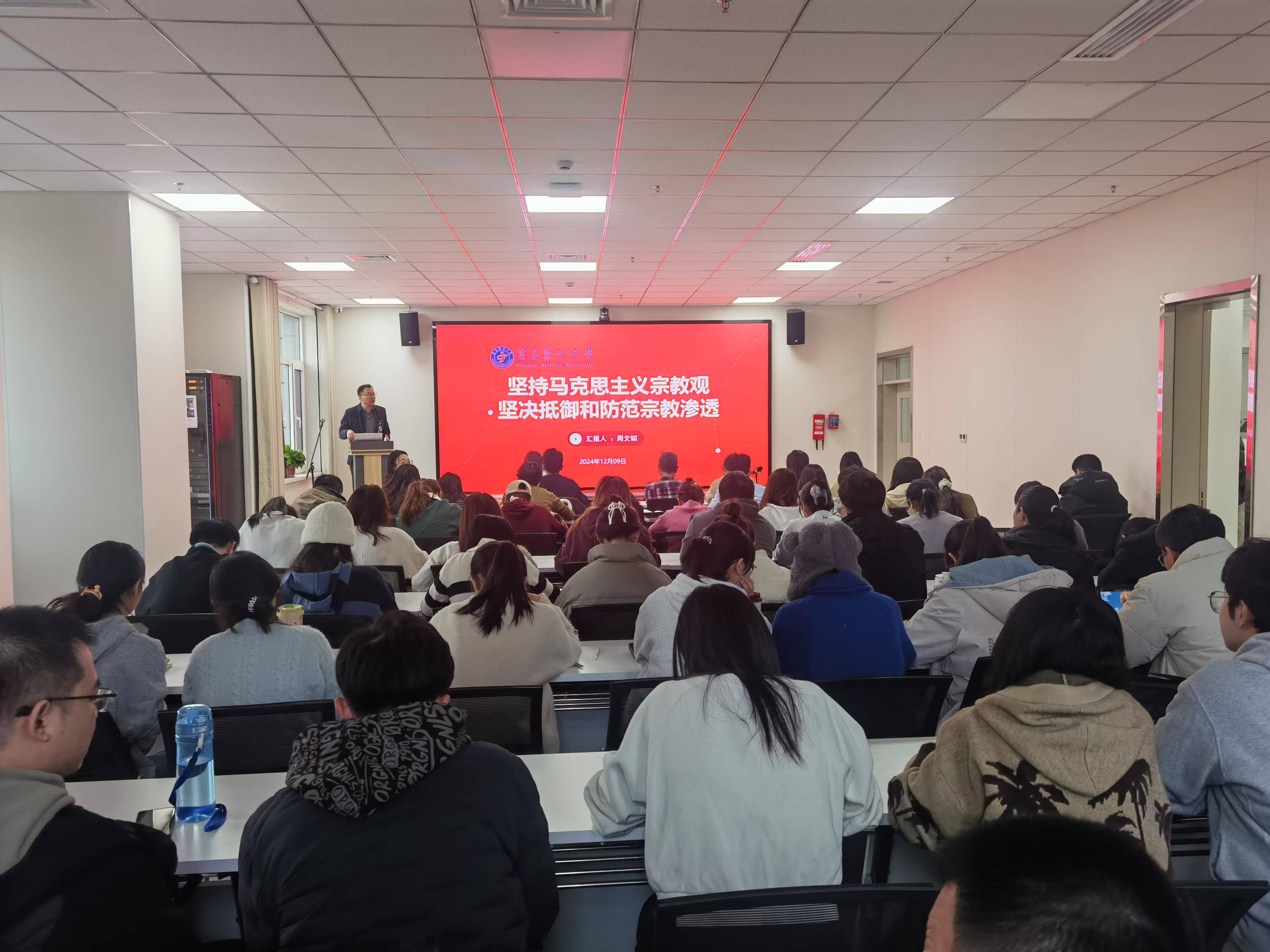 培训会上,全体师生集中学习了习近平总书记关于加强和改进民族工作的重要思想和在中央统战工作会议上的重要讲话精神,同时邀请学校党委常委统战部部长周文韬导学解读马克思主义民族观和宗教观,重点围绕中华民族大家庭、中华民族共同体、铸牢中华民族共同体意识,结合实际案例进行解读剖析,引导研究生崇尚科学,成为有理想信念的时代新人。培训中,师生共同观看了《[铸牢共同体 中华一家亲] 宁夏:民族团结 共谱塞上江南新篇章》和《宪法知识问答—维护我国的民族团结要注意些什么》微视频。