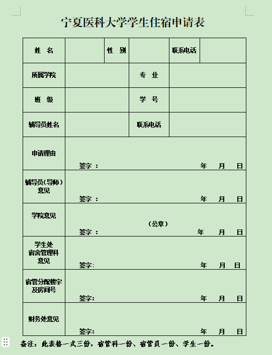 太阳成集团官方网站学生住宿申请表