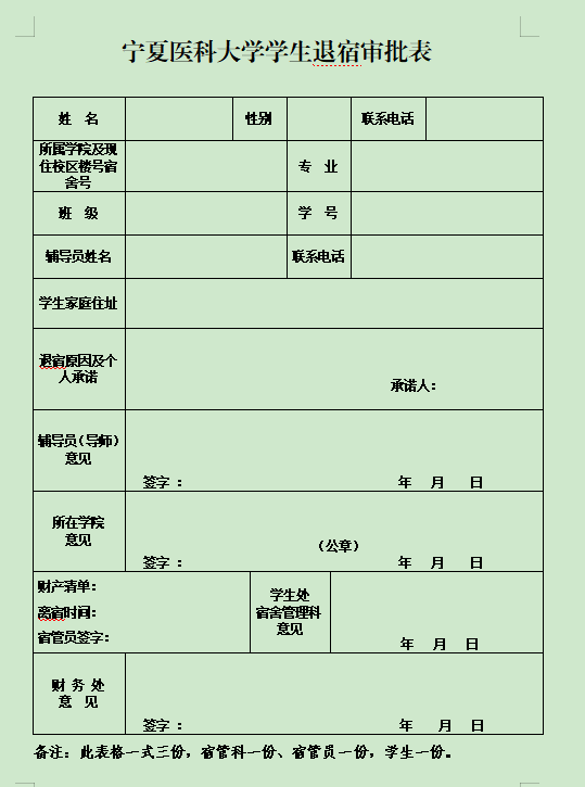 太阳成集团官方网站学生退宿申请表