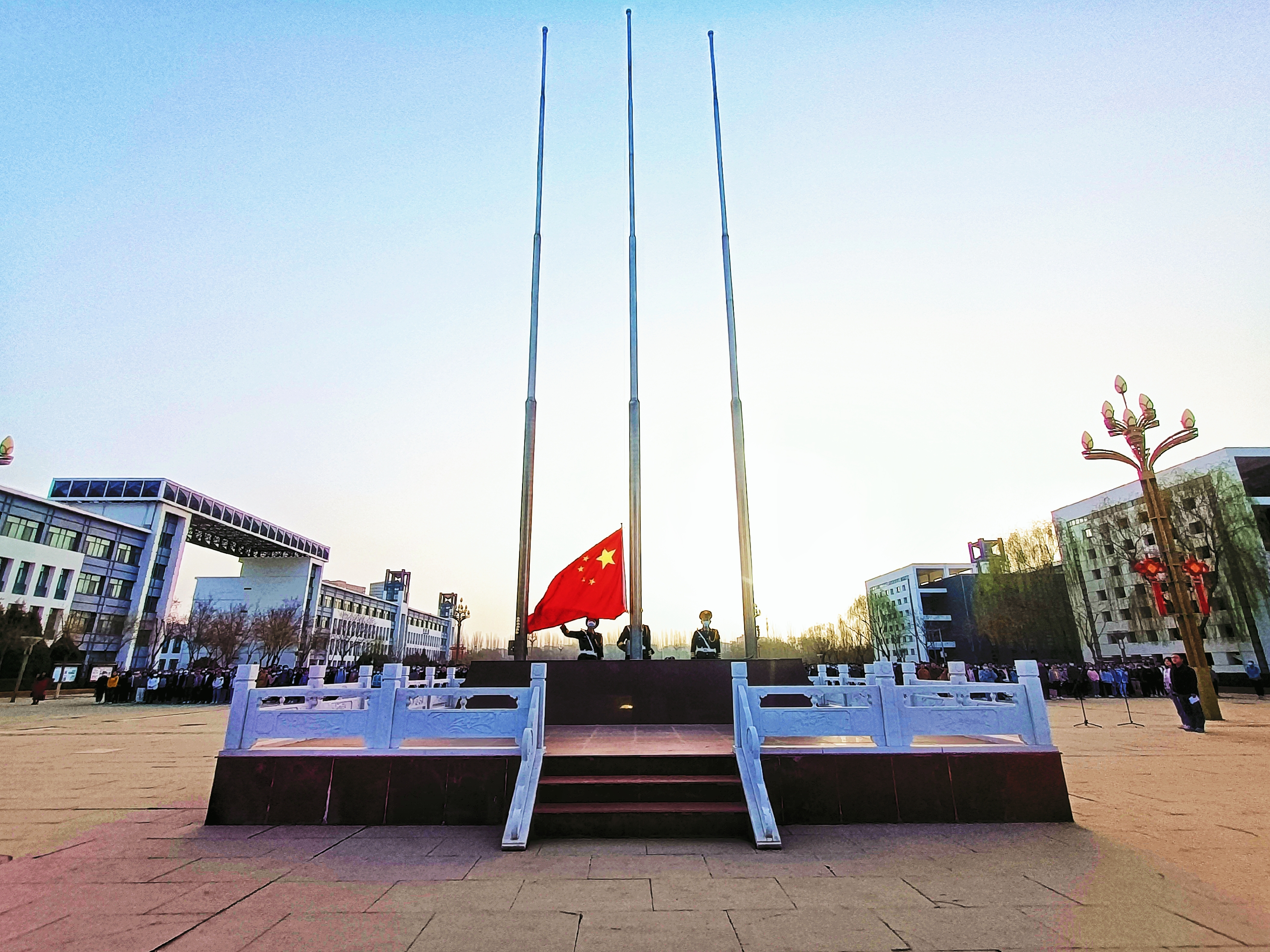在清明节来临之际,为引导全体学生从党史中学习感悟伟大人物、革命先辈、英雄模范的故事,缅怀先烈、致敬英雄,3月29日上午7:20,太阳成在雁湖校区和双怡校区同时举行了“缅怀先烈 致敬英雄”党史学习教育主题升国旗仪式,学生处(学生工作部)、团委、全体专兼职辅导员和全体在校学生参加本次仪式。升旗仪式由学生处(学生工作部)副处长李岩主持。