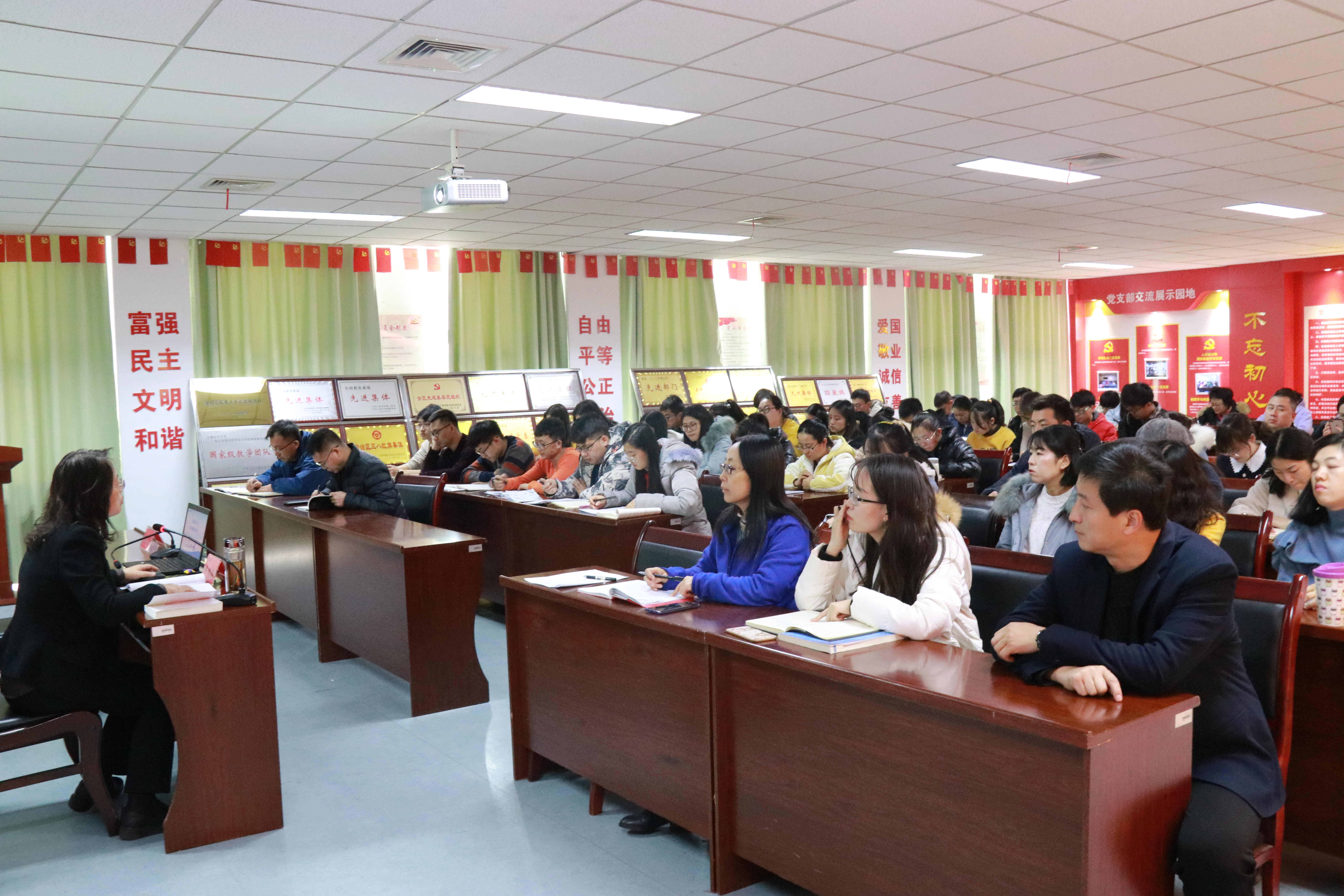 1125日下午,学校副校长郝银菊以《全面辩证长远看待我国经济发展》为题,在雁湖校区厚生楼三楼党员之家为基础医学院师生作形势与政策专题报告。全体党支部书记、委员、2017生物技术班全体同学、研究生第一支部全体党员和教师代表100余人聆听了报告