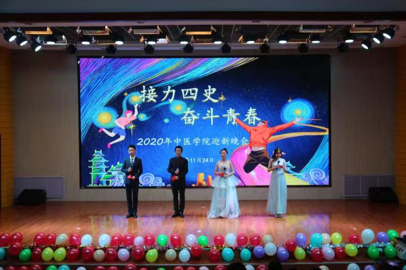 11月24日,中医学院在应谦楼教学楼启思学术报告厅举办2020年“接力四史·奋斗青春”主题迎新晚会,学院师生300余人观看节目。