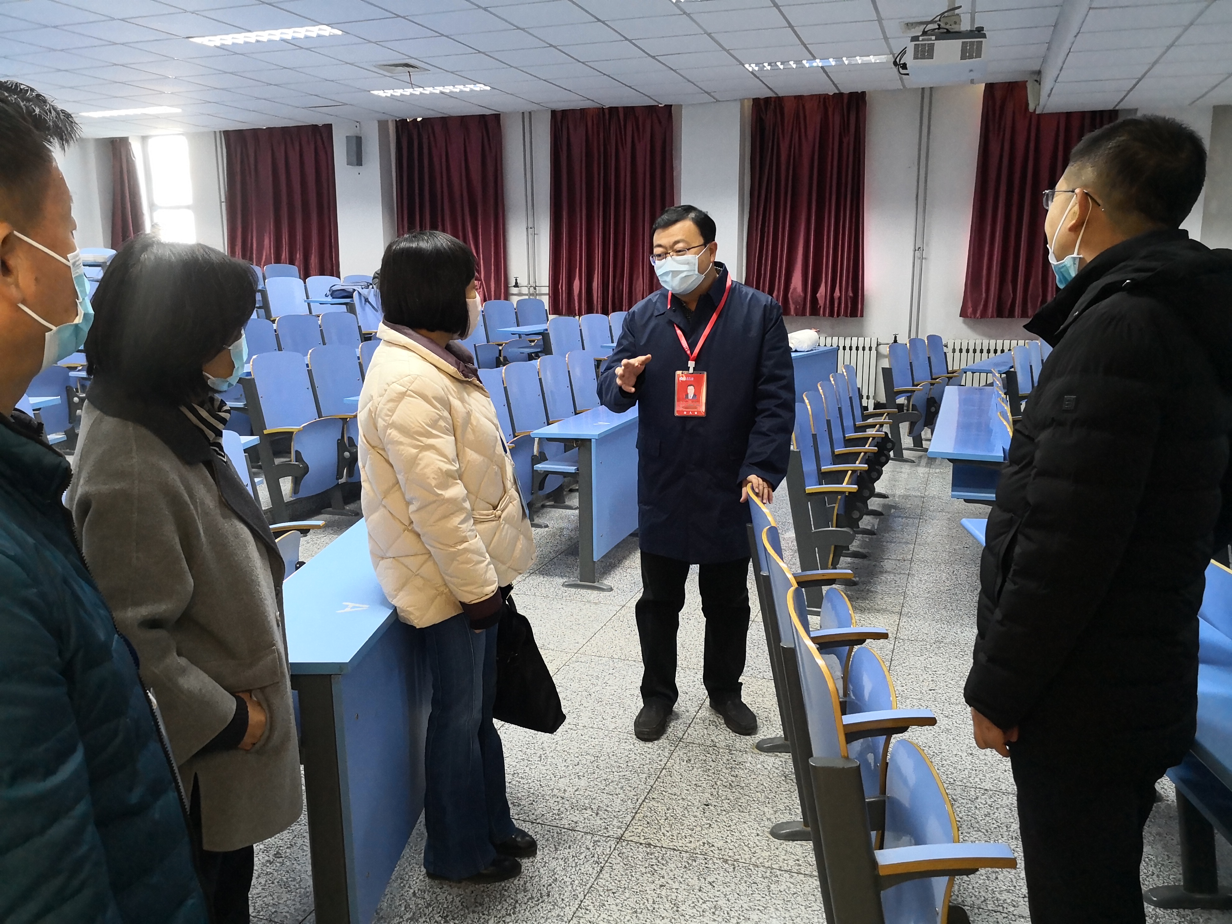 丁聃副校长首先进入应谦教学楼422教室,现场督导了研究生线下教学工作,完整听了一节理论课,了解教师授课实际,感受教室的音响、投影、网络等设施的运行状况,查看教室座椅、暖气、隔音、通风等环境情况,课间休息还询问了研究生学习情况。接着又走访了公共卫生与管理学院、基础医学院、图书馆、创新创业学院,每到一处都仔细查看和询问用于教育教学的设施情况,并同相关单位负责人进行交流,提出了具体工作要求。调研结束时,丁聃副校长对调研组成员做了进一步的工作要求,一要有大局意识,要以开放的胸怀来接纳全校的教学工作,做好对教学资源特别是教室资源的统筹,协助学校完成总体布局和优化协调,在现有条件之下,盘活校内教育资源,全面支持学校工作,高效合理的利用分管资源。二要有超前意识,抓紧时间优化现有课程安排,聚焦核心工作,根据科研产出与实际贡献分配好现有资源。三要有全局意识,统筹各培养单位教学工作需求,相关职能处室根据教学进度及内容,协调教辅单位提供相应教学场地和设备,做好冬季采暖等基础保障工作。四要有统筹意识,按照学校“大管理”理念,具体工作的职能部门要主动协调,全面统筹好研究生教学和本、专科教学所需的教室资源,共同研究课程设置与教室分配。五要有责任意识,要保质保量完成本学期教学任务,将疫情给教学带来的不利影响降到最低,以教学保障工作为抓手,打造特色校园文化,全面改善教学环境。