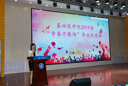 6月12日下午,在雁湖校区启思学术报告厅举办基础医学院2019年“青春不散场”毕业欢送会。学校相关部门和基础医学院领导,各学系主任和教师代表,学生300余人参加了此次活动。