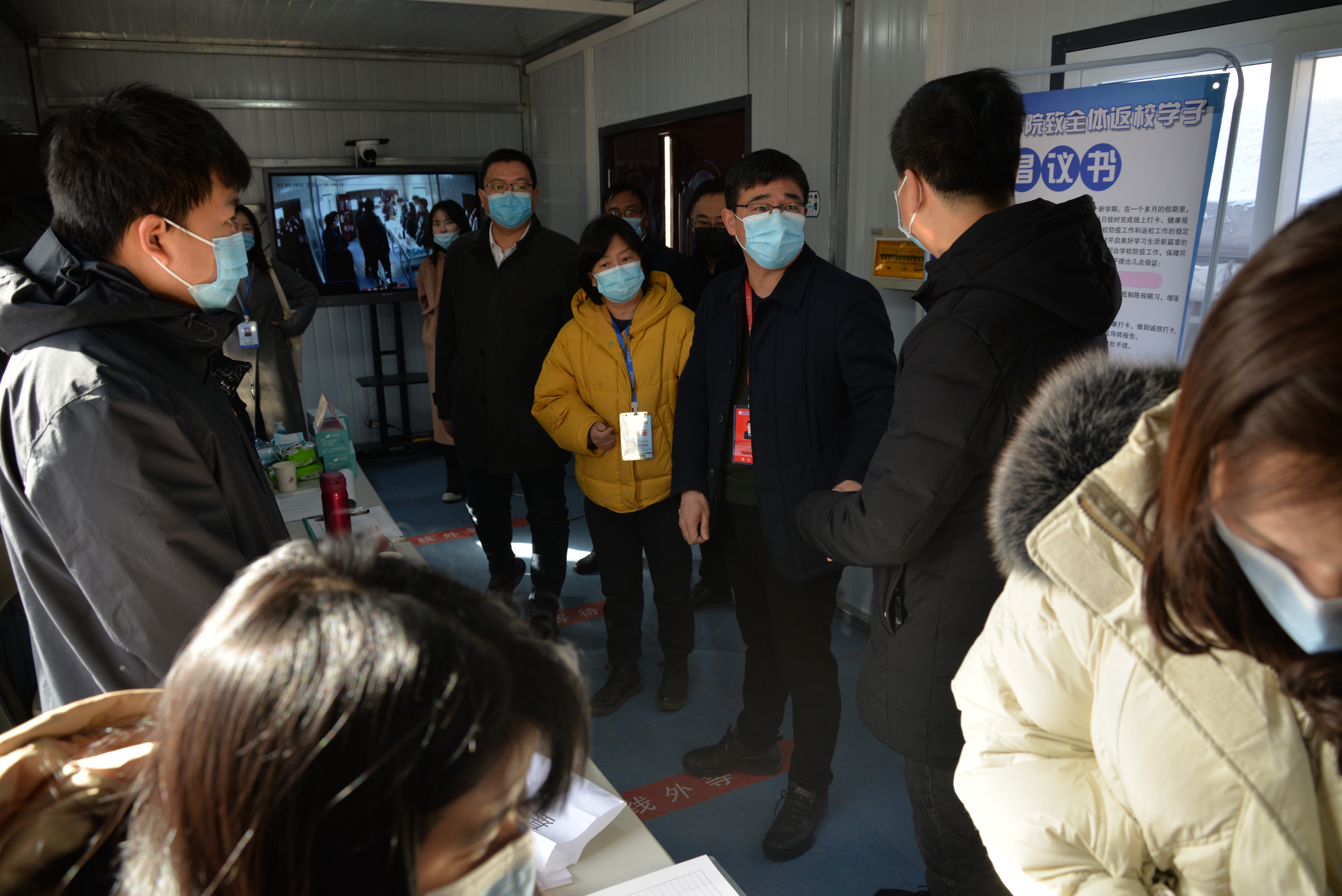 3月1日上午9:00,姜怡邓校长带领学校办公室、研究生院负责人到雁湖校区北门返校研究生接待点进行督导检查,研究生院院长徐方、基础医学院党委副书记马立虎、公共卫生与管理学院党委副书记韩炜、护理学院党委副书记耿瑶等汇报了研究生春季学期返校工作安排及返校情况和返校后教学安排,姜怡邓校长对各部门的工作给予充分肯定,要求相关部门开学后继续做好疫情防控工作,严格落实好疫情防控监测报告,确保师生安全,并按照研究生院的统一安排,全力以赴做好返校研究生的教学、科研、技能实践等各项培养工作。他还强调,研究生院要统筹全校各部门有序做好研究生管理工作,全面做好2021年博士、硕士研究生招生复试工作和毕业生论文答辩及毕业生就业工作,不断跟进博士点申报工作。