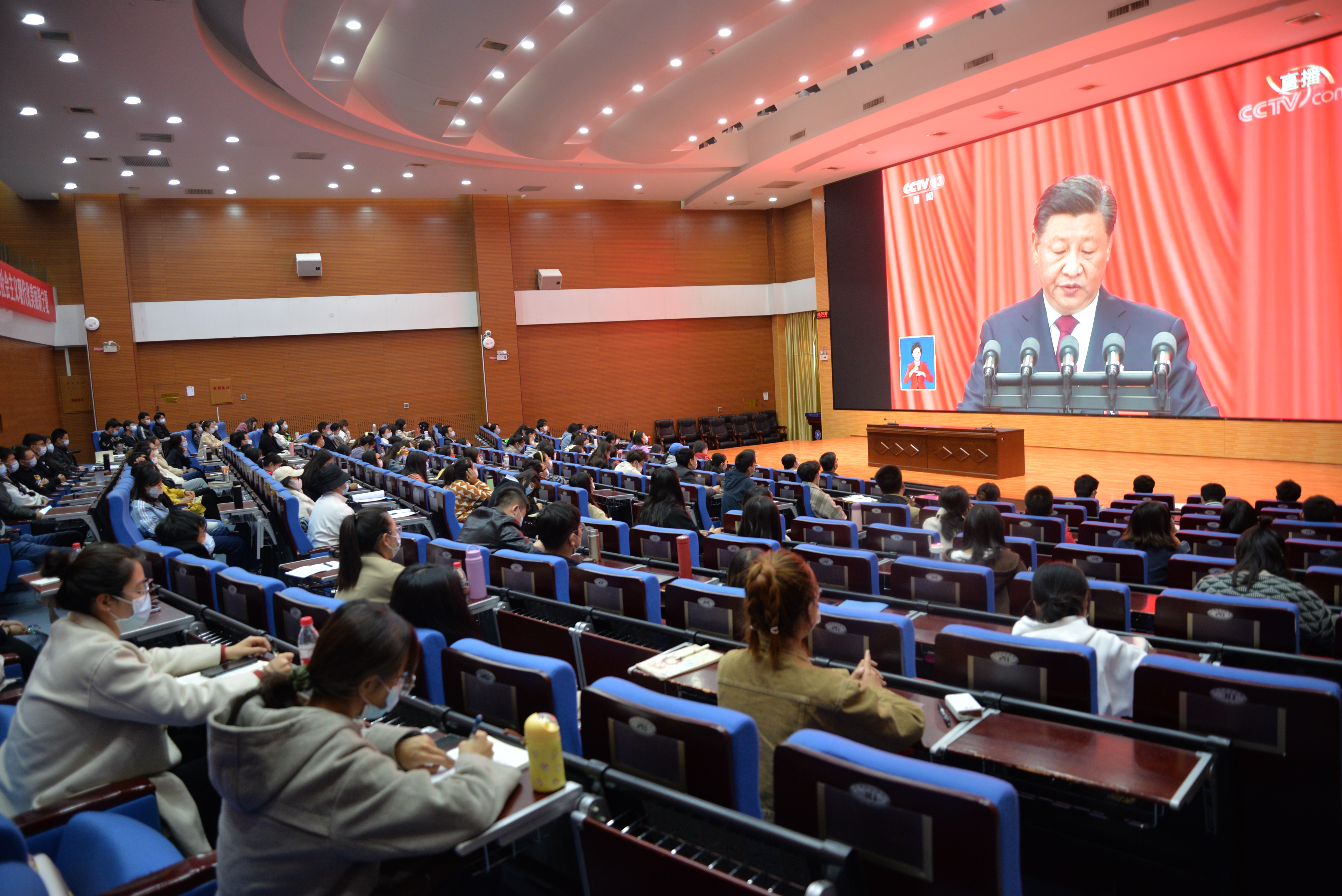 2022年10月16日10:00,中国共产党第二十次全国代表大会顺利召开。党的二十大是在全党全国各族人民迈上全面建设社会主义现代化国家新征程、向第二个百年奋斗目标进军的关键时刻召开的一次十分重要的大会。为深入学习宣传贯彻党的二十大精神,研究生院(研究生工作部)组织全体研究生认真观看党的二十大开幕大会,学校校长姜怡邓、副校长丁聃分别在雁湖校区、双怡校区同在校研究生一同观看了大会直播。