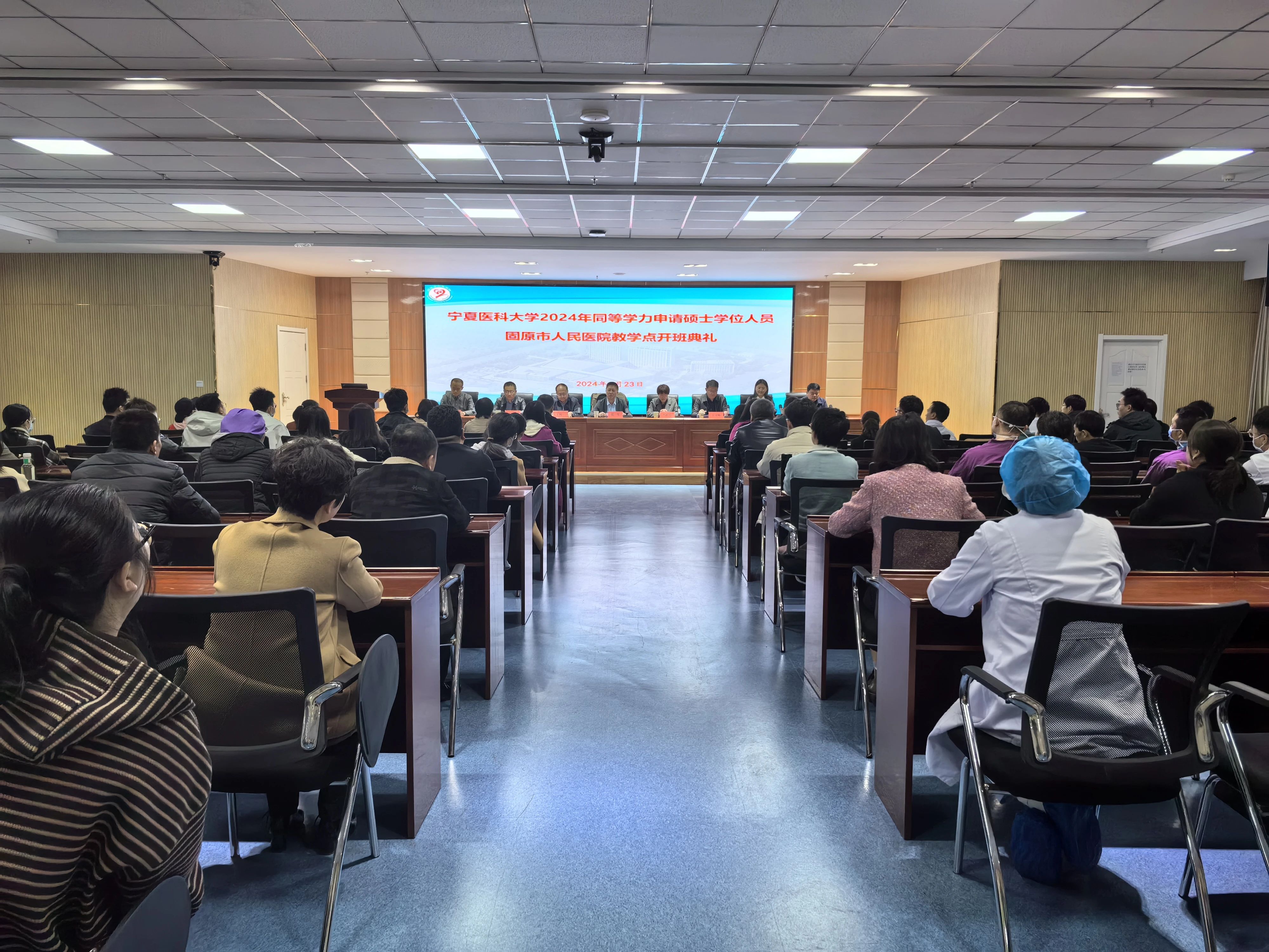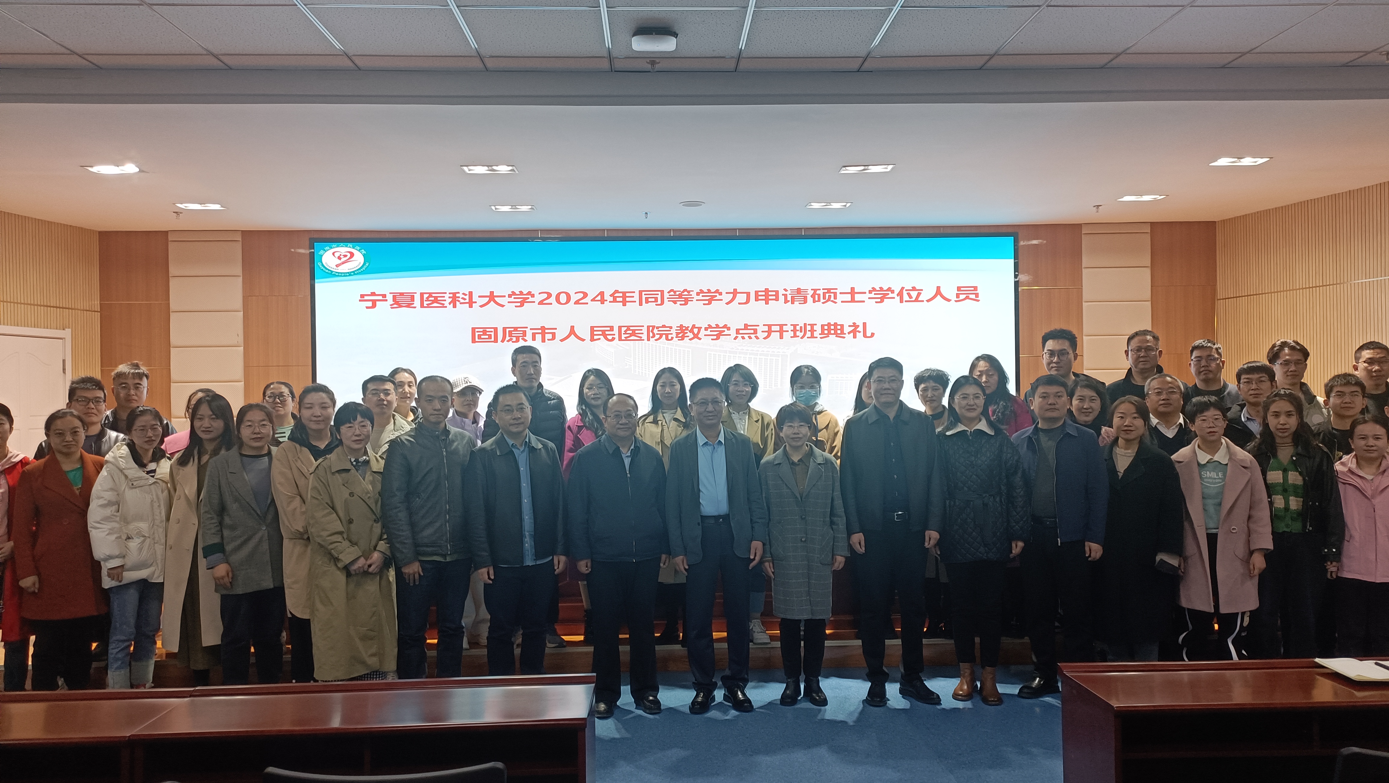 为进一步落实好自治区有关部门关于医务人员学位提升的要求,全面发挥大学服务地方经济建设的需求、承担起培养高素质人才、推动科技进步的使命,3月23日上午,太阳成集团官方网站2024年同等学力申请硕士学位固原市人民医院教学点开班典礼在固原市人民医院举办。固原市卫生与健康委员会副主任马桂玲、研究生院党政负责人及相关工作人员、固原市人民医院党委书记王统一、副院长张丽及45名学员参加了开班仪式,开班仪式由研究生院直属党支部书记、党委研究生工作部部长张生同志主持。