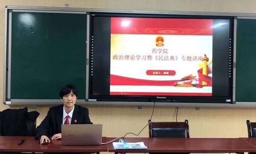 药学院教职工表示要按照习近平总书记关于加强民法典学习宣传的指示精神,以此次专题讲座为契机,在全院掀起一轮学习热潮,争做学习、运用、遵守、维护法典的表率。充分利用电子显示屏、微信公众号、宣传栏等形式,加大宣传,营造学法典氛围,切实增强“四个意识”、坚定“四个自信”、做到“两个维护”。