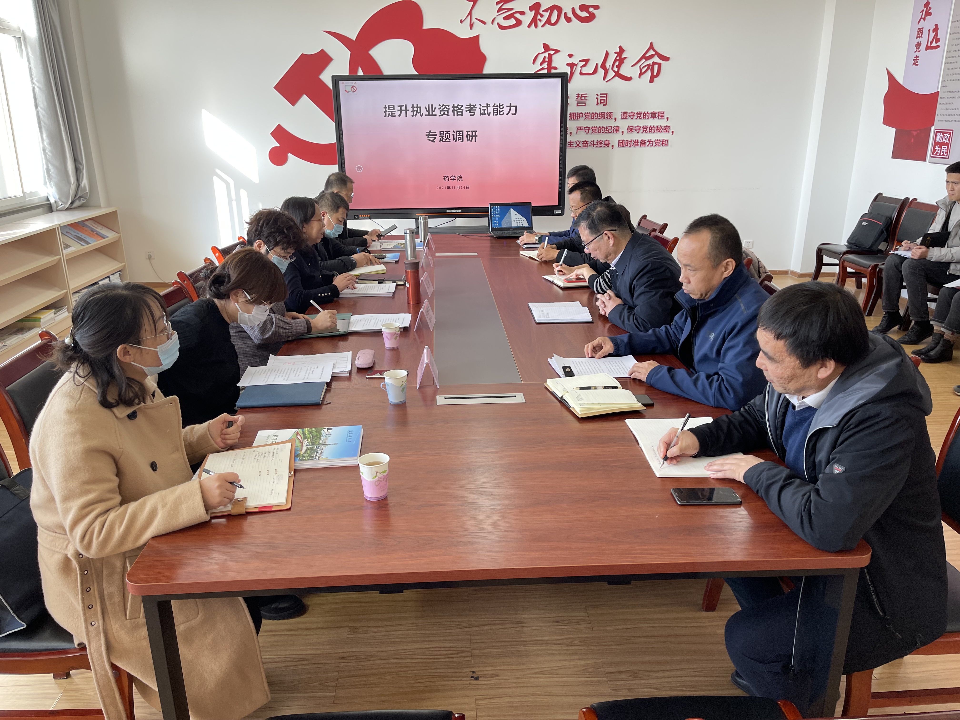 11月24日上午,学校副校长杜勇一行到药学院调研执业资格考试药理学科相关工作,教务处、教师教学发展中心、教学质量与监控中心、临床实践教学中心负责人、学院领导、教学办及相关课程负责人参加。