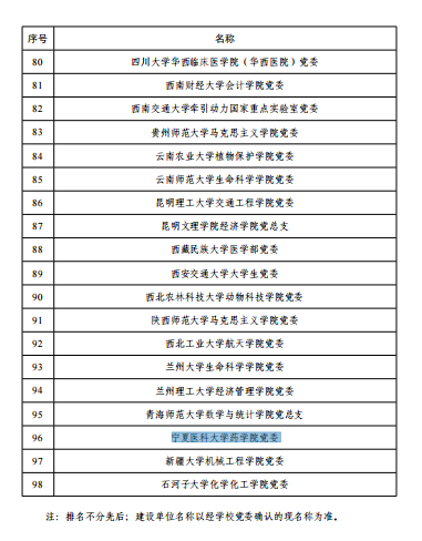 2022年6月7日,教育部办公厅发文,药学院党委通过第二批“全国党建工作标杆院系”培育创建验收。