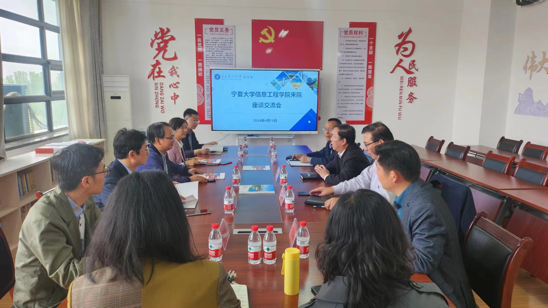 4月19日,宁夏大学信息工程学院党总支书记汪文帅一行来院交流座谈,学院领导班子成员、教师代表参加。