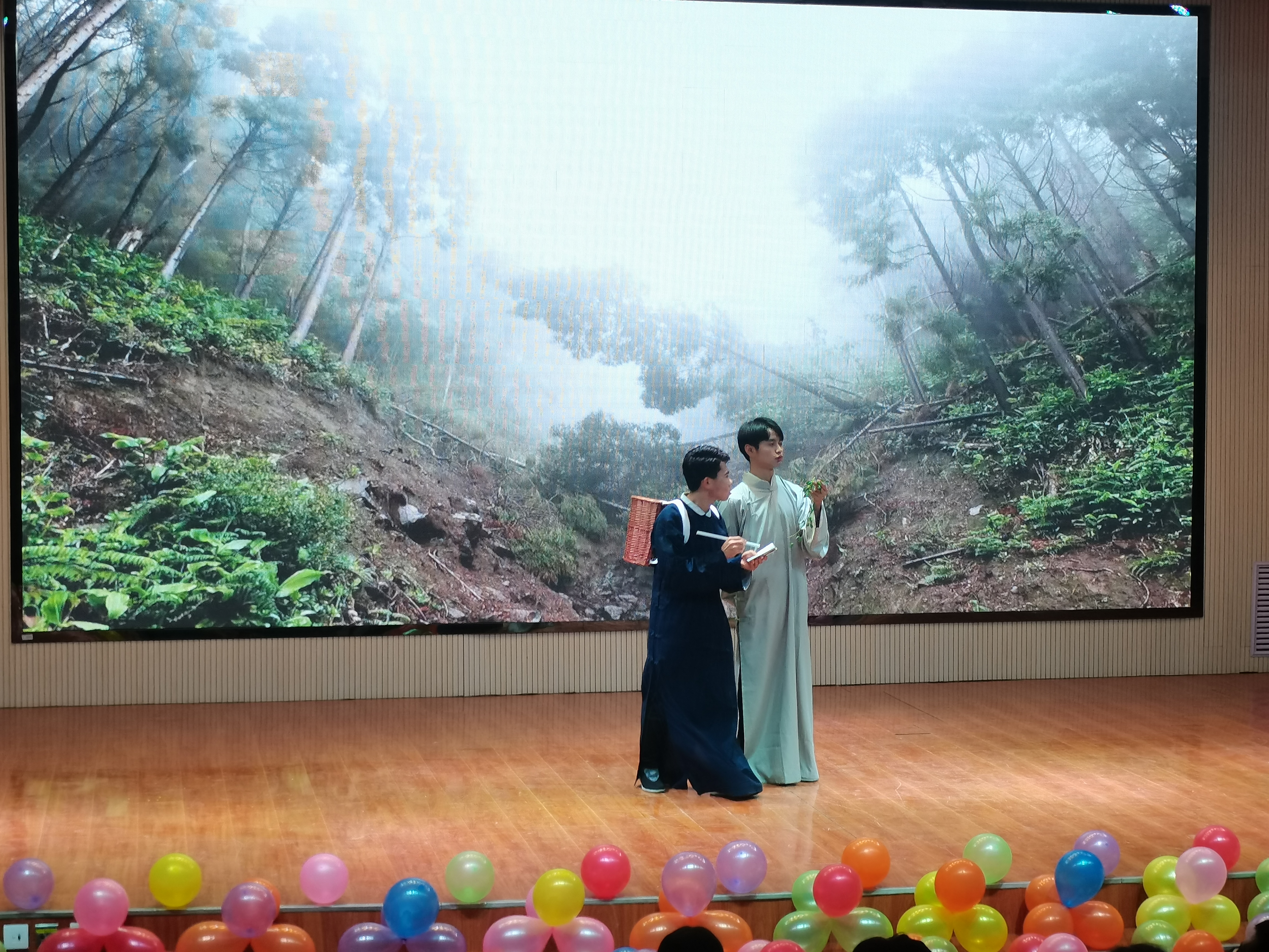 大会在《无悔青春献祖国》的青春诗朗诵中进入主题,2020级临床药学、药学卓越班、2021级临床药学班等6个班级通过 PPT汇报和现场情景展示,围绕名家介绍、事迹和启示三个方面,分别分享孙思邈、陈克恢、李时珍、陶弘景、屠呦呦、曲焕章六位中医药名家事迹,为大家带来一场精彩纷呈的汇报演出。