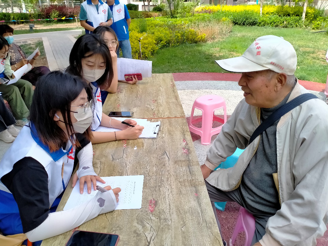 为更好的开展实践活动,团队提前拟定调研计划,联络宁夏、四川、河北、山东等各地养老机构和社区组织,获得了相关支持和协助,进行问卷调查和访谈,根据老人填写自测表的情况对老人的记忆力进行初步判定,了解阿尔茨海默症患者及其家庭的基本情况、症状表现、照护情况和个人需求等。同时,团队对患者进行面对面的访谈,听取患者和家庭的心声,观察患者的生活环境、家庭支持情况、照护方式等,记录细节和问题,为后续工作提供参考。