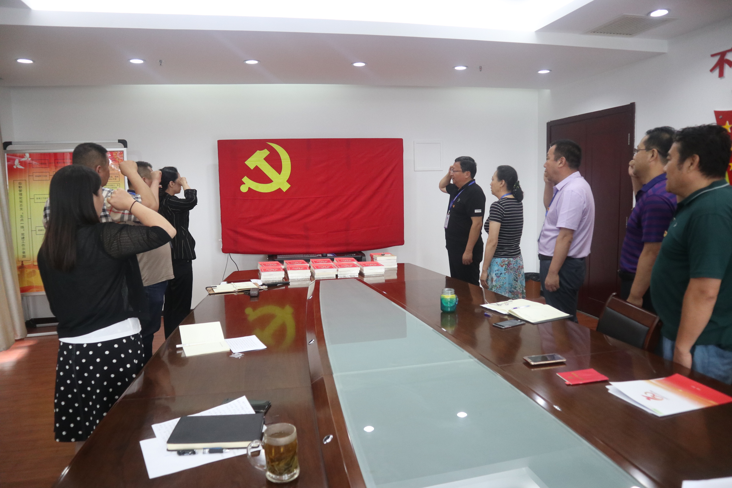 活动伊始,吴华作为领誓人,带领全体党员同志面向党旗重温入党誓词。随后,为党员赠送“政治生日”礼物《党史必修课》《浴血荣光》党建书籍,希望党员能够通过阅读和学习,熟知党的光辉历史和奋斗历程,不断增强政治责任感和历史使命感,从而激发干事创业的斗志和政治热情。