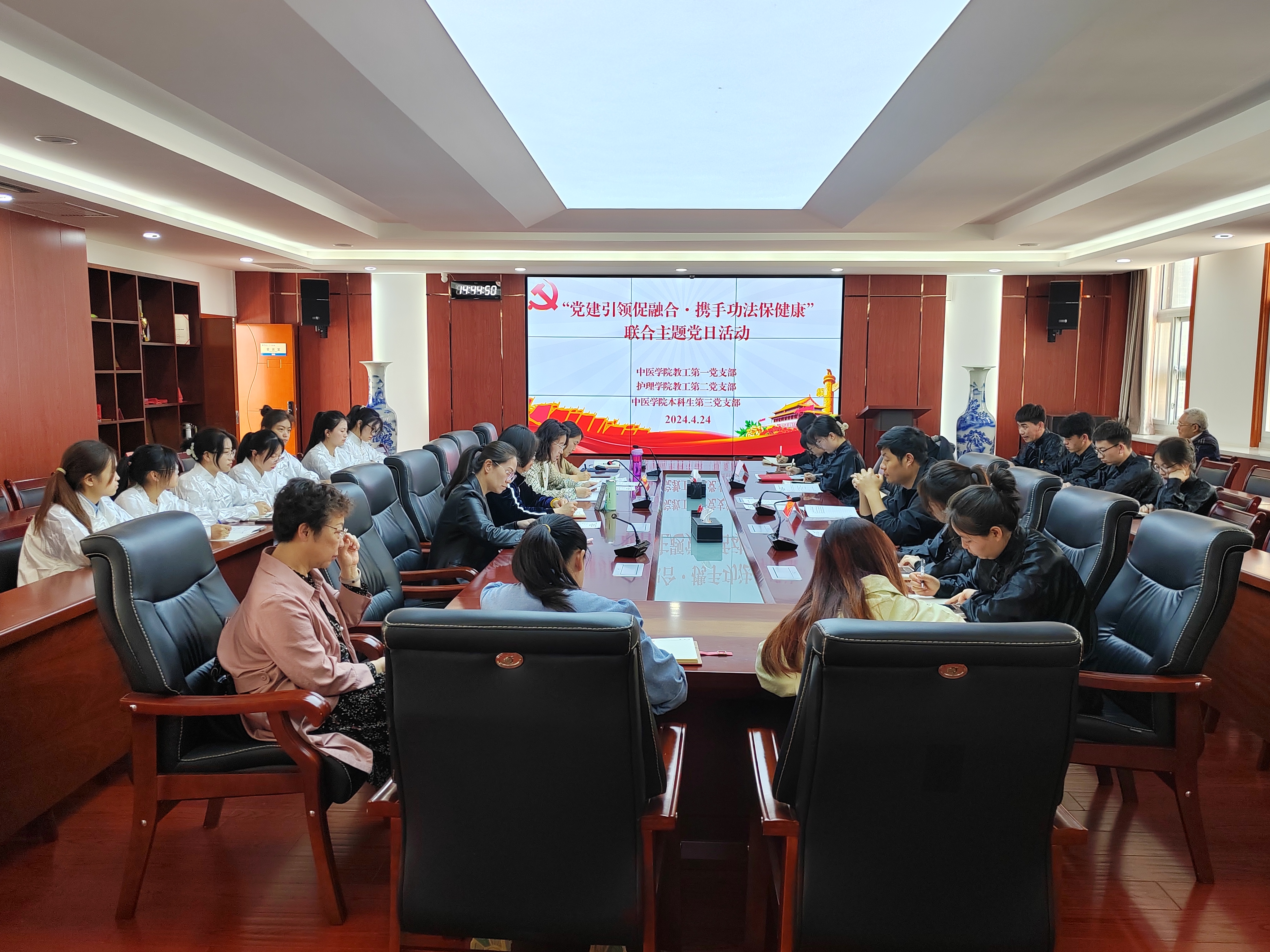 4月24日,中医学院教工第一党支部、本科生第三党支部联合护理学院教工第二党支部共同开展“党建引领促融合 携手功法保健康”主题党日活动。各党支部全体党员和入党积极分子参加活动。