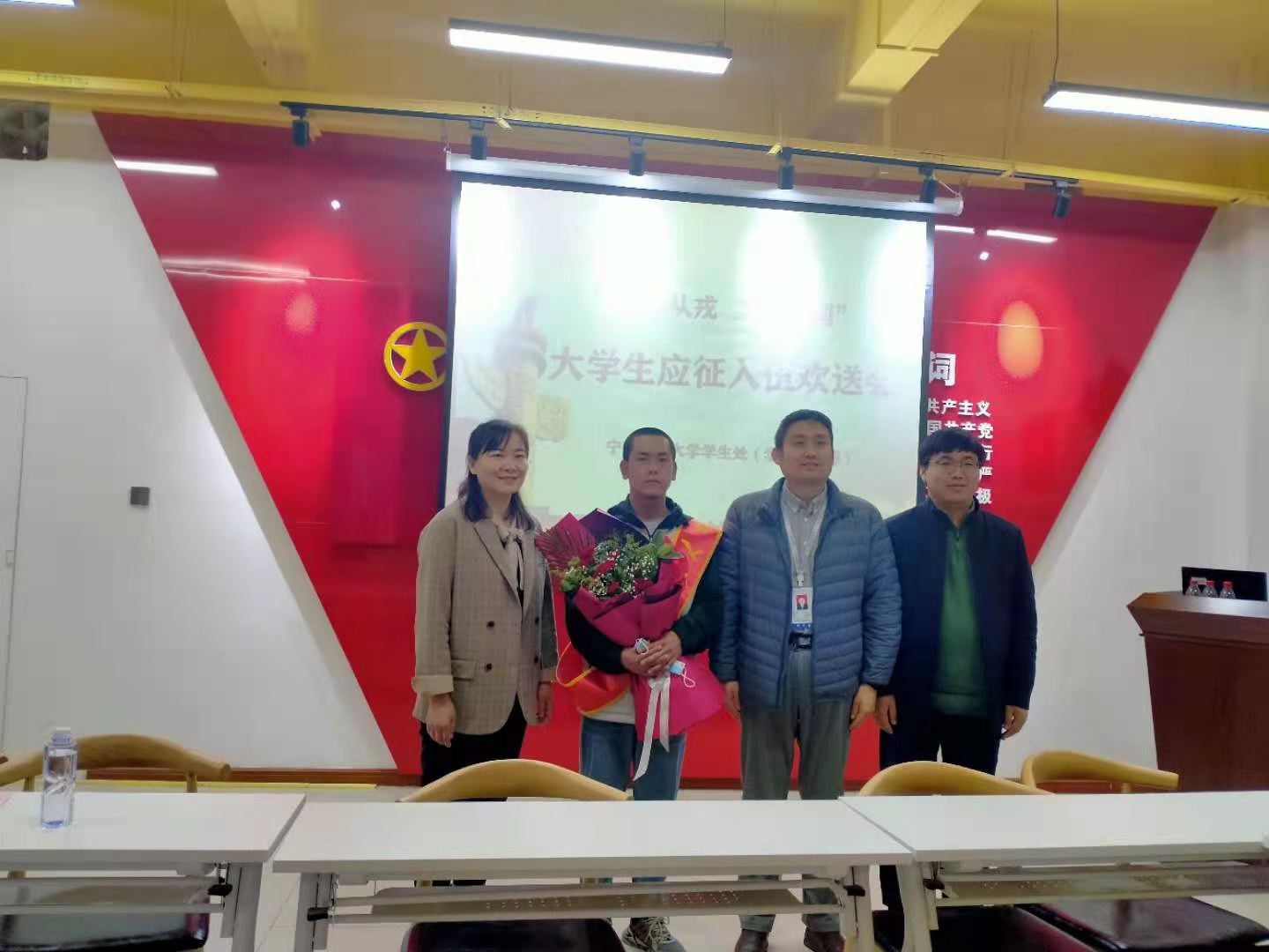 自今年的征兵工作启动以来,中医学院党委、行政高度重视,立足常态化疫情防控工作要求,经兴庆区武部、学生处、招就处、学院通过线上线下等多种途径开展政策宣传及咨询,帮助学生实现“携笔从戎 励志报过”的强军梦。经报名初检、体格检查、政治考核、走访调查等环节,学院2020级虎生刚同学戴上红花与绶带,昂首挺胸,意气风发,即将奔赴军营。这是光荣,更是责任。他们用青春无悔保家卫国,是我们中医的骄傲。我们祝愿他们在接下来的军旅中勇往直前,建功立业、报效祖国!