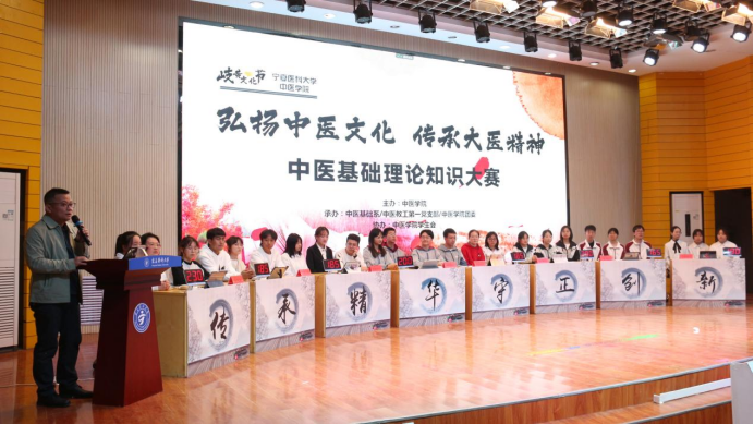 开幕式上宣读了《中医学院岐黄文化节活动方案》,希望全院师生积极联动,主动挖掘和品鉴中医药文化魅力,推动学院学风建设。中医基础理论知识竞赛设立了“必答题、风险题、抢答题、我选你答”四个环节,进入决赛的24名同学组成8支队伍。各队竞争激烈你追我赶,台上台下积极互动,充分展现了中医学子扎实的理论功底和良好风貌。